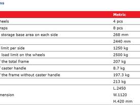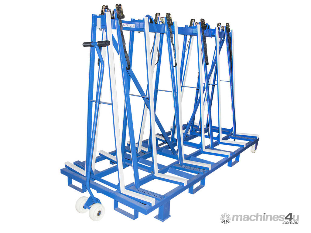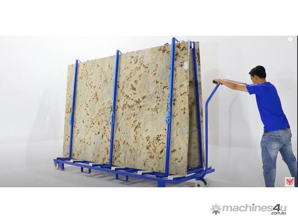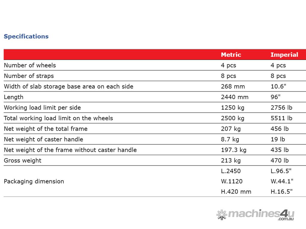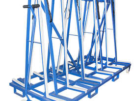 The Transport Frame, TF2440, is a heavy-duty frame to transport granite, marble, engineered stone, glass, and natural stone countertops. Designed for both storage and transport, it features a powder-coated steel structure (optional galvanized finished), locking bars with rachet straps which hold slabs firmly in place, and integrated forklift receivers for secure and efficient handling. With rubber-coated supports to prevent surface damage and adjustable support legs for stability, this transport frame is essential for stone fabricators, suppliers, and contractors.
