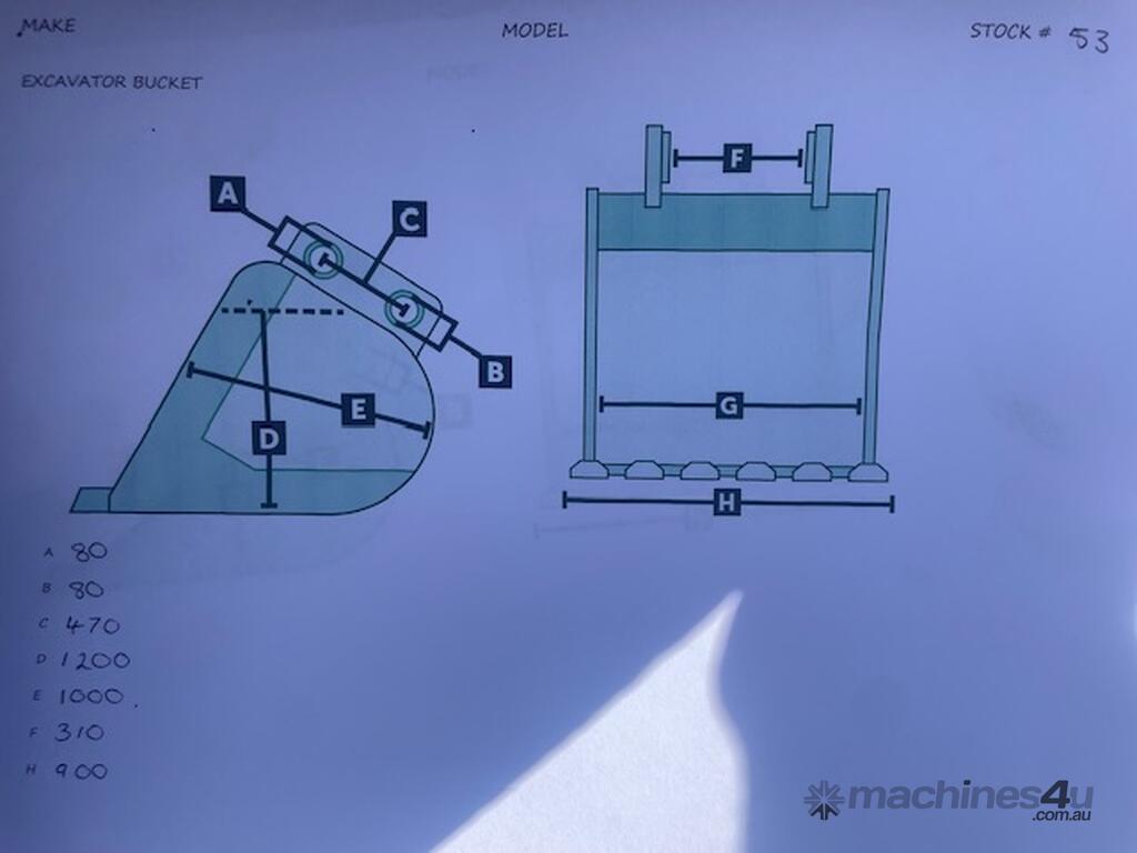 Trench Bucket 900mm 80mm pin :      $1,500 AUD($1,650 Inc. GST)
