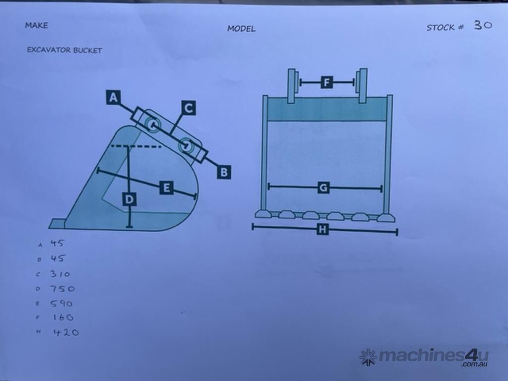 Trenching Bucket 420mm 45mm pin :      $2,000 AUD($2,200 Inc. GST)
