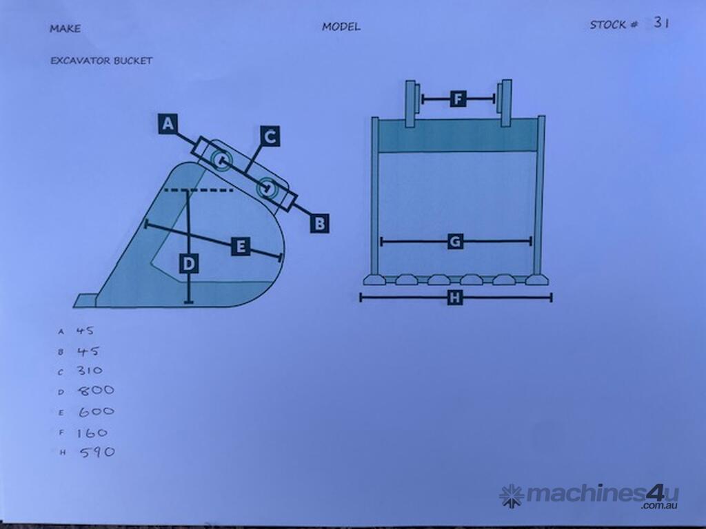 Trenching Bucket 600mm 45mm pin :      $1,800 AUD($1,980 Inc. GST)