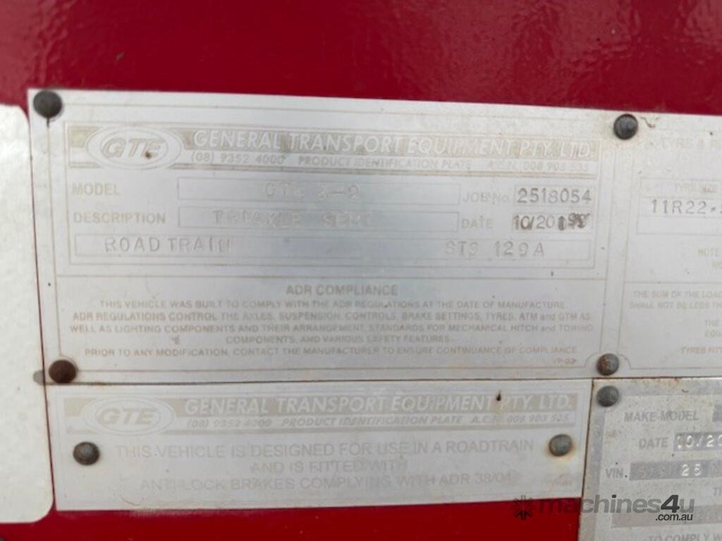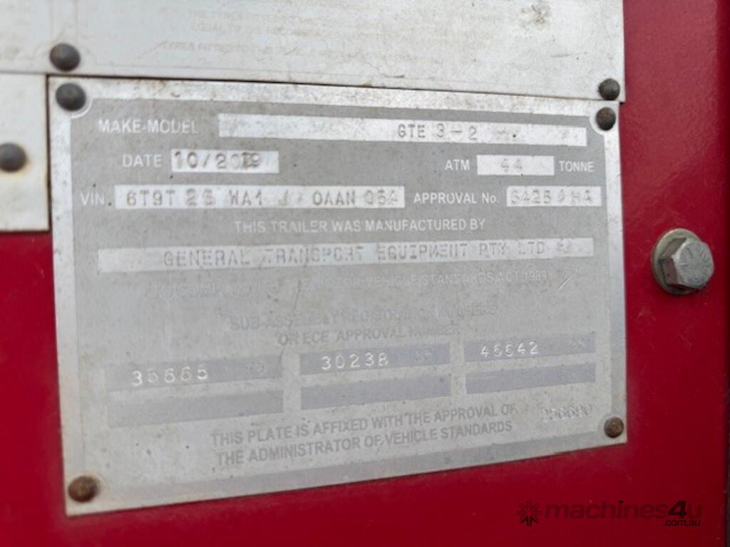 2019 GTE ' steel, airbag suspension, steel rims, airtec weight gauge, westarp roll over tarp. Vin: 6T9T25WA1J0AAN054, 23.5T axle group load, road train lead rated, ringfeder, jost landing legs, spare tyre included - not pictured. Estimated only done 70,000kms. Victorian Primary Producer registration.
