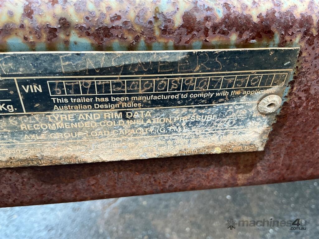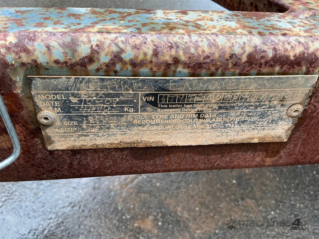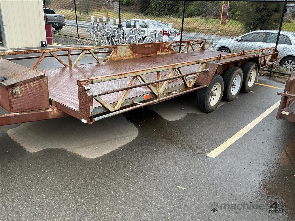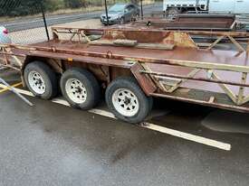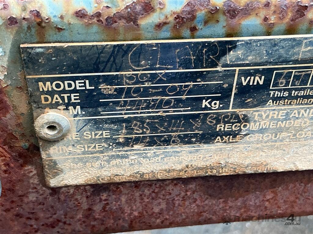 Tri Axle Trailer -Heavy Duty -Clare Engineers- -Year 2009 (10) Steel Checker Plate Floor -Tray Size 6 metre long x 2100 mm wide - "Note 70 mm Ball Tow Hitch " , Breakaway Brake System in Tool Box - -Spare Wheel - -Sold as is - Previous Registration Number T Q O -213 -Sold Unregistered -No Plates -ATM 4490 kg. ( Collection From Clare )