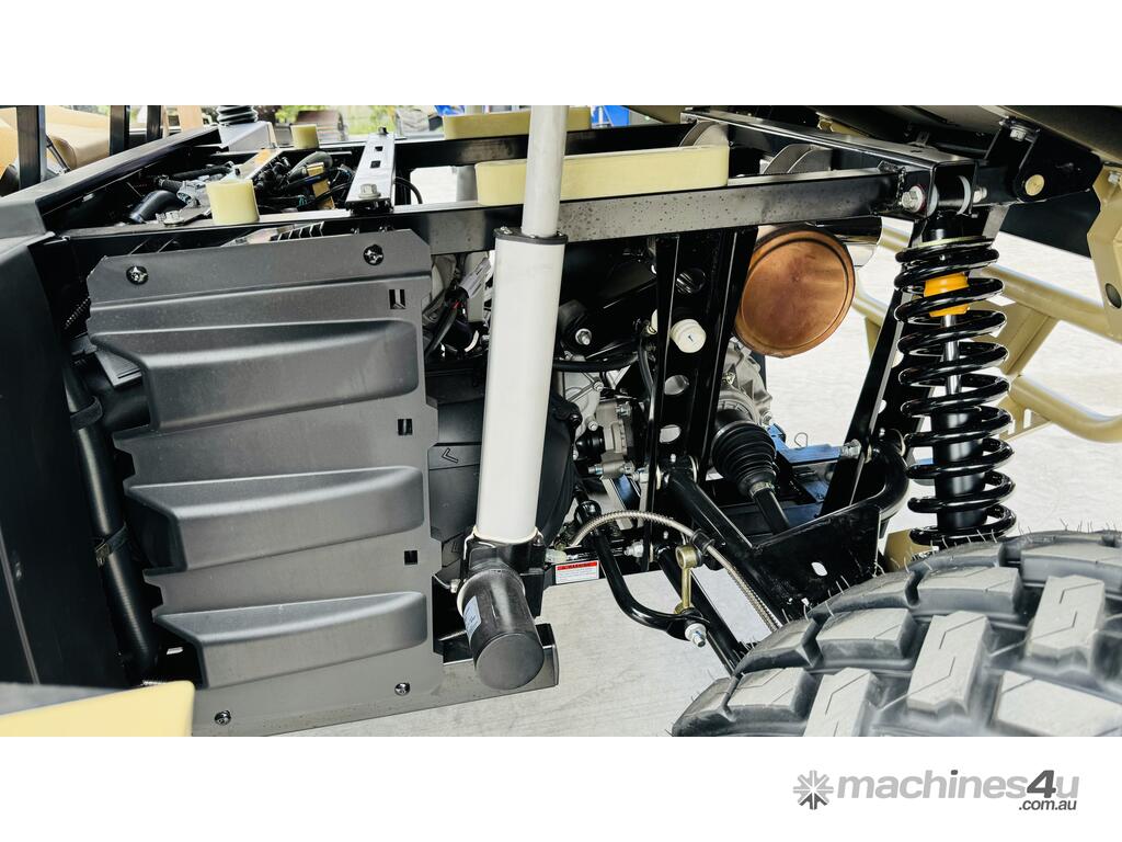 The rear-mounted engine improves balance and makes CVT maintenance easier. Its 360kg electric dump bed lets you unload with a simple button press. Part-time four-wheel drive with diff locks provides traction on rough terrain, while the 2,040kg winch is ready for recovery when needed.