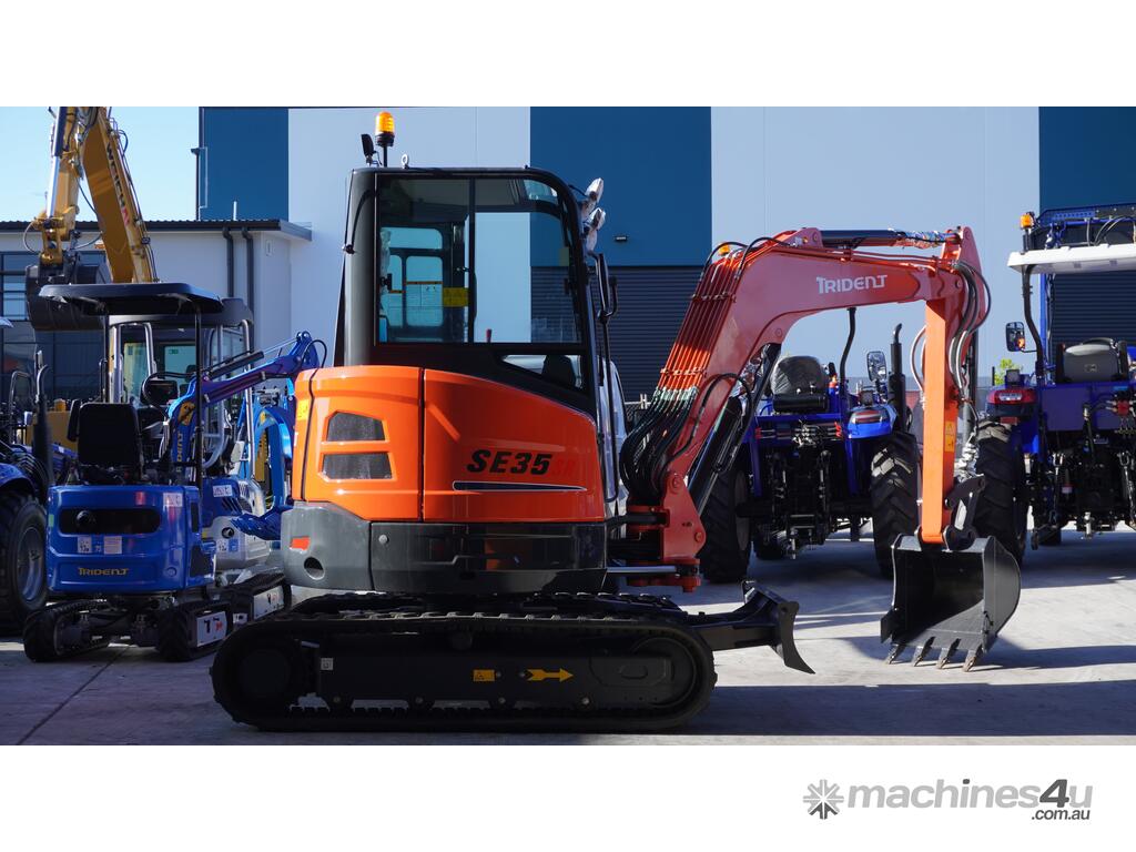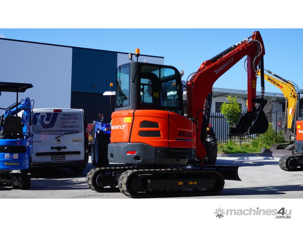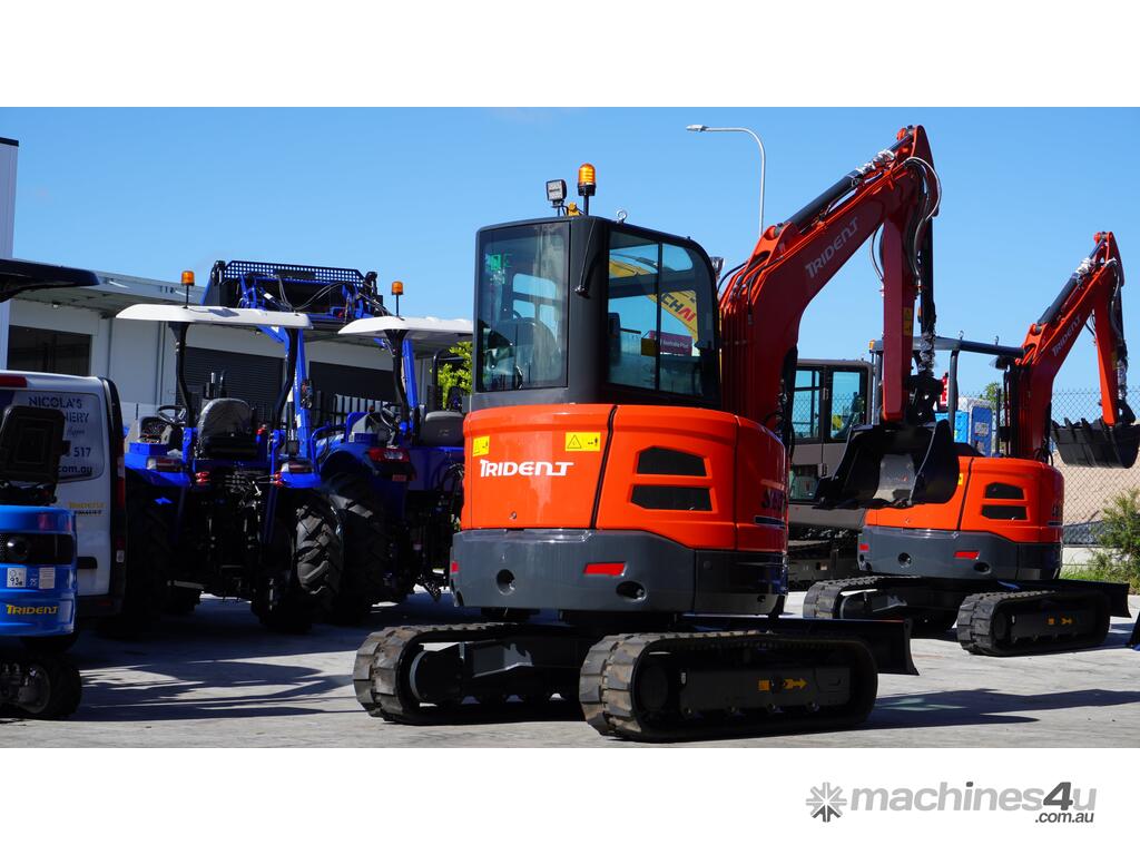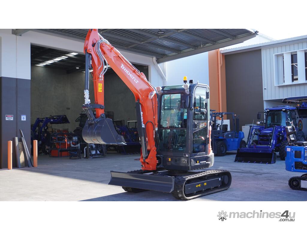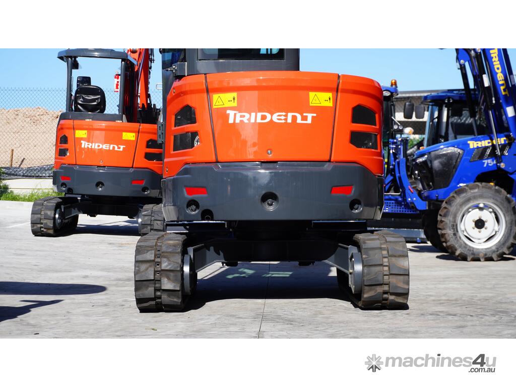Trident 3.8T A/C cabin excavator plus 350mm, 500mm, 700mm and 1000mm Bucket, Thumb Grab, 50mm Ripper and Hydraulic Quick Hitch for $50,990 inc GST.