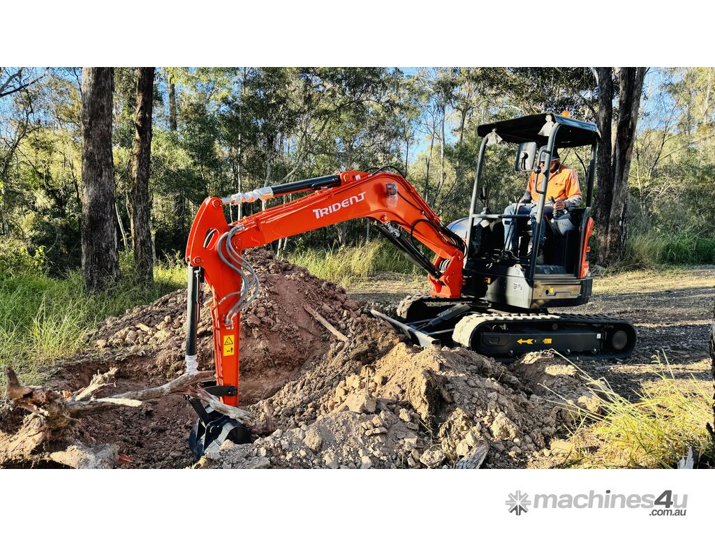 Trident 3.8T ROPS excavator plus 350mm, 500mm, 700mm and 1000mm Bucket, Thumb Grab, 50mm Ripper and Hydraulic Quick Hitch for $48,990 inc GST.