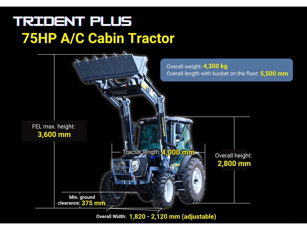 The TRIDENT Plus series, manufactured by Wei chai Lovol, is crafted to meet the highest standards and is exclusively available through Nicola's Machinery. It represents the pinnacle of tractor excellence with superior driving experience, enhanced performance, increased durability, and exceptional comfort. Featuring a synchromesh/power-shift transmission, it’s the ideal choice for efficiency and ease of use, making it a premium upgrade over the standard TRIDENT series.