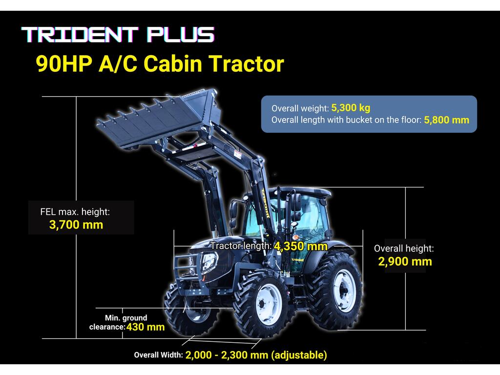 The TRIDENT Plus series is manufactured by Wei chai Lovol to meet our high standards and represents the pinnacle of tractor performance. Exclusive to Nicola's Machinery, these models offer superior driving experience, enhanced performance, durability, and comfort. Featuring a synchromesh/power-shift transmission, the TRIDENT Plus series is designed for efficiency and ease of use, with a premium upgrade for exceptional quality.