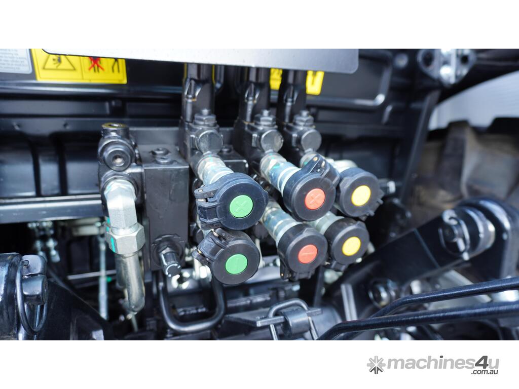 Hydraulics: Down pressure-powered 3-point linkage with floating function, 3 sets of rear remotes, and quick hitch.