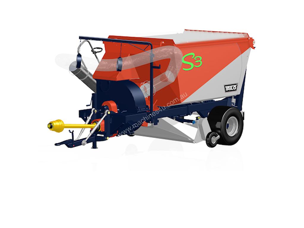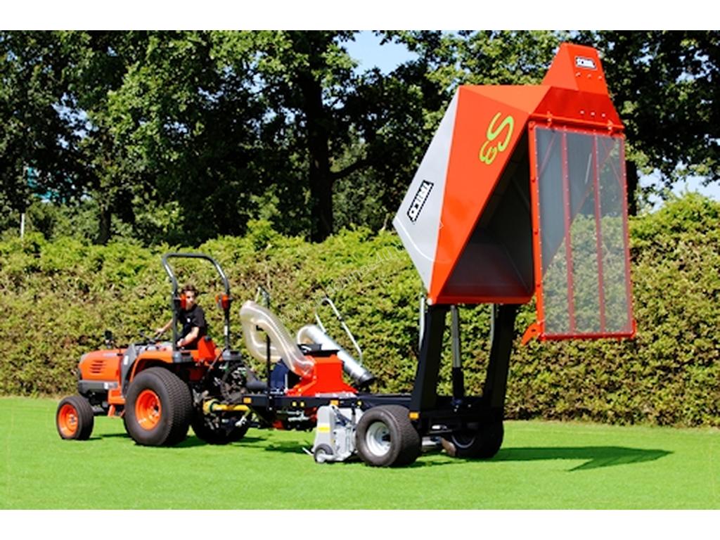 The TRILO S3 is a compact and economical vacuum sweeper with a loading capacity of 3 m3 and large, air filled tyres for low soil pressure. The S3 is standard equipped with a brush hood, which brushes the mowed grass or leaves together for more efficient vacuuming. Optionally you can also equip the S3 with a mowing shaft, verticutting shaft or a combined shaft for simultaneously mowing and verticutting. The castor wheels are mounted in the heart of the shaft, ensuring that the sweeper follows the contours of the soil perfectly. This vacuum sweeper is suitable for tractors from 28 HP (20 kW) and is driven by a Walterscheid PTO shaft with wide angle and overrun clutch. The Ø 700 mm 4 blade fan is placed inside a TRILO centrifugal pump with replaceable lining for extra-long life. The optional wander hose has a reach of 6 meters and is equipped with a sturdy end pipe with handgrip.