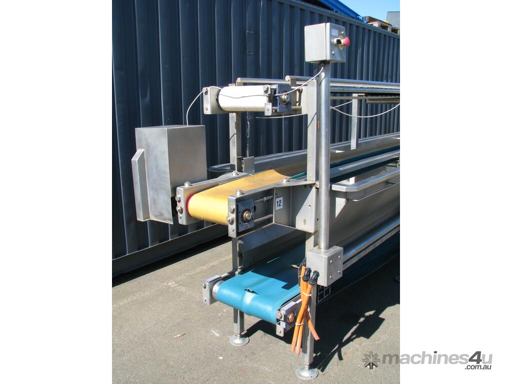 It is 3 conveyor belts on one frame. Each belt is powered by its own motor.