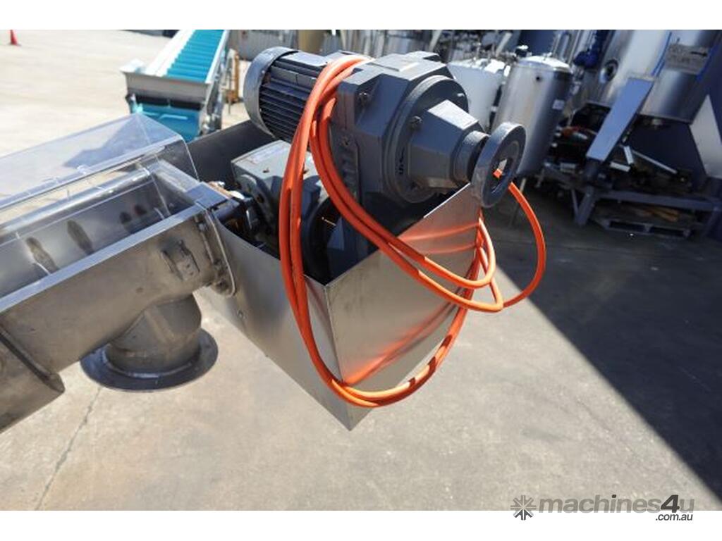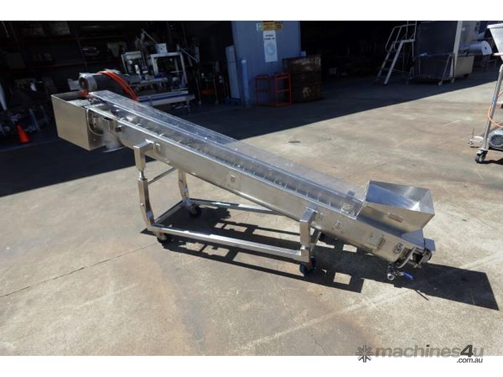Unit is a stainless steel jacketed incline trough screw conveyor.