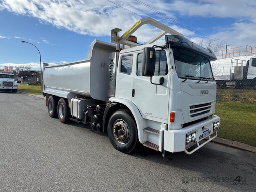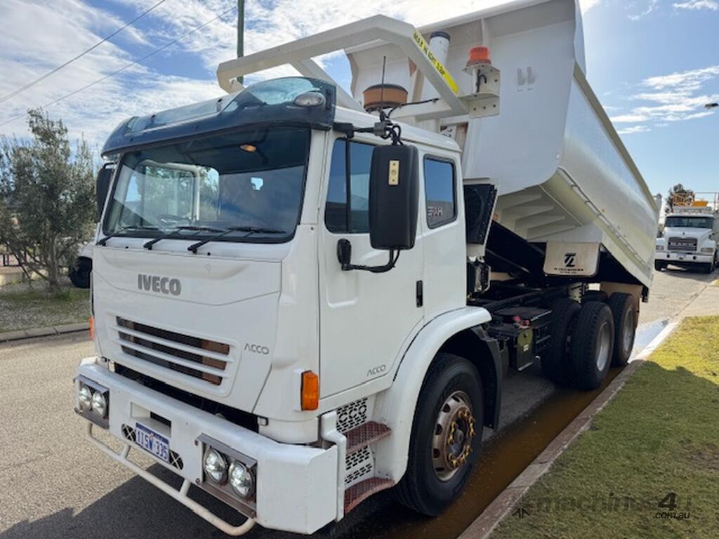 Truck Tipper Iveco Acco km 2 way tail gate Auto 1ISW335 SN1780. ROPS. 101186km. Tare 10300kg. GVM 23000kg. GCM 30000kg. Air tail gate. Cummins engine.