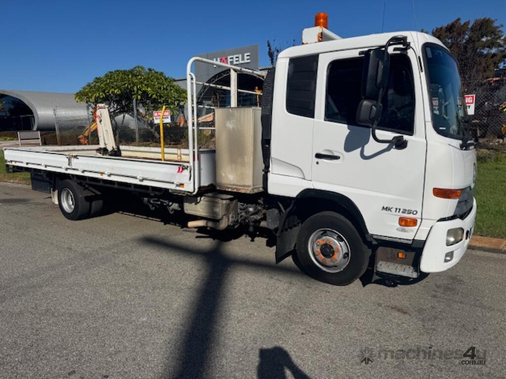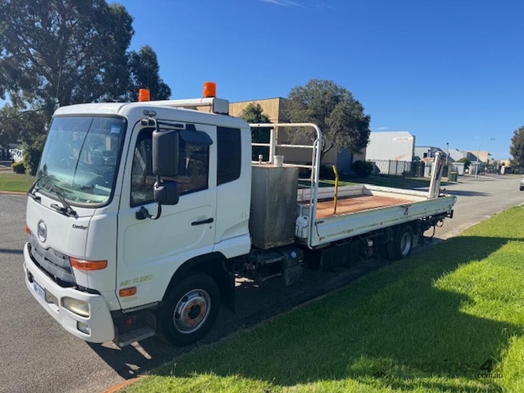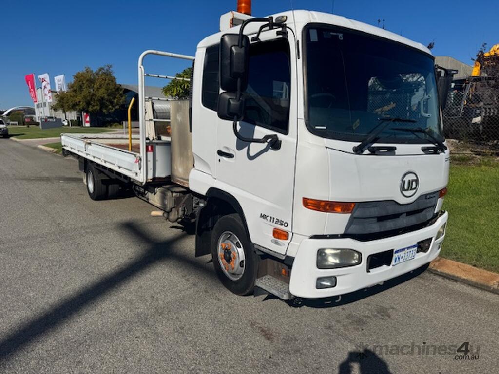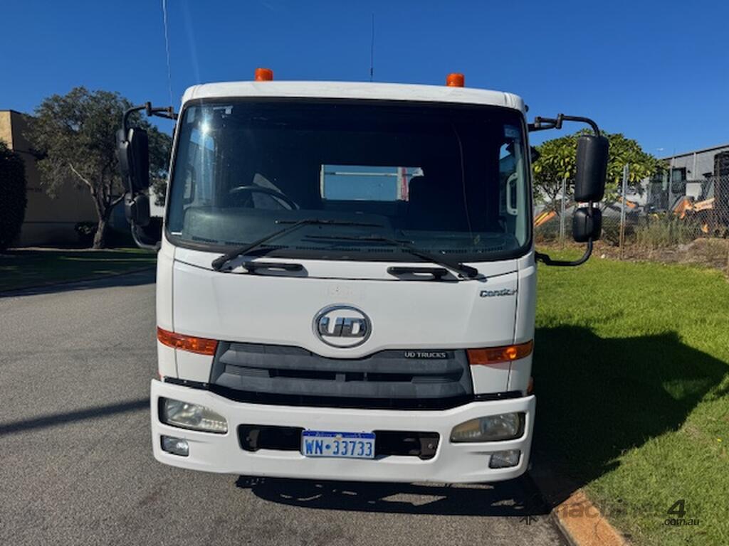 Truck UD Condor MK11250 Ex-council 250HP 5 tonne with 1.2 tonne Keverick Crane WN33733 SN1735. Auto. 196398km. 18ft tray. Tow bar. GVM 11000kg. GCM 15500kg. 2014.