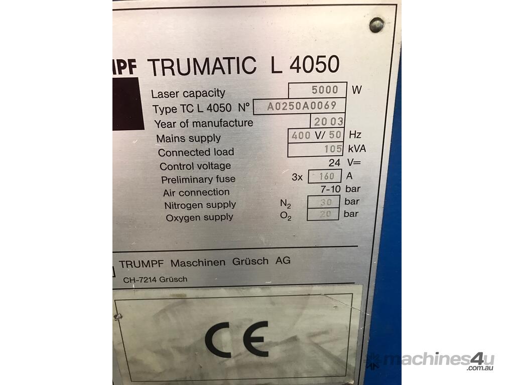 The most-trusted machine retailer in Australia is proud to present to you a used TRUMPF TRUMATIC L4050 5kW (2003).