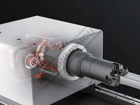 Servo-Flipping Unloading -(M2M3) Utilizing a new form of servo-flipping unloading reduces the workpiece's movement during cutting and further enhances cutting precision.