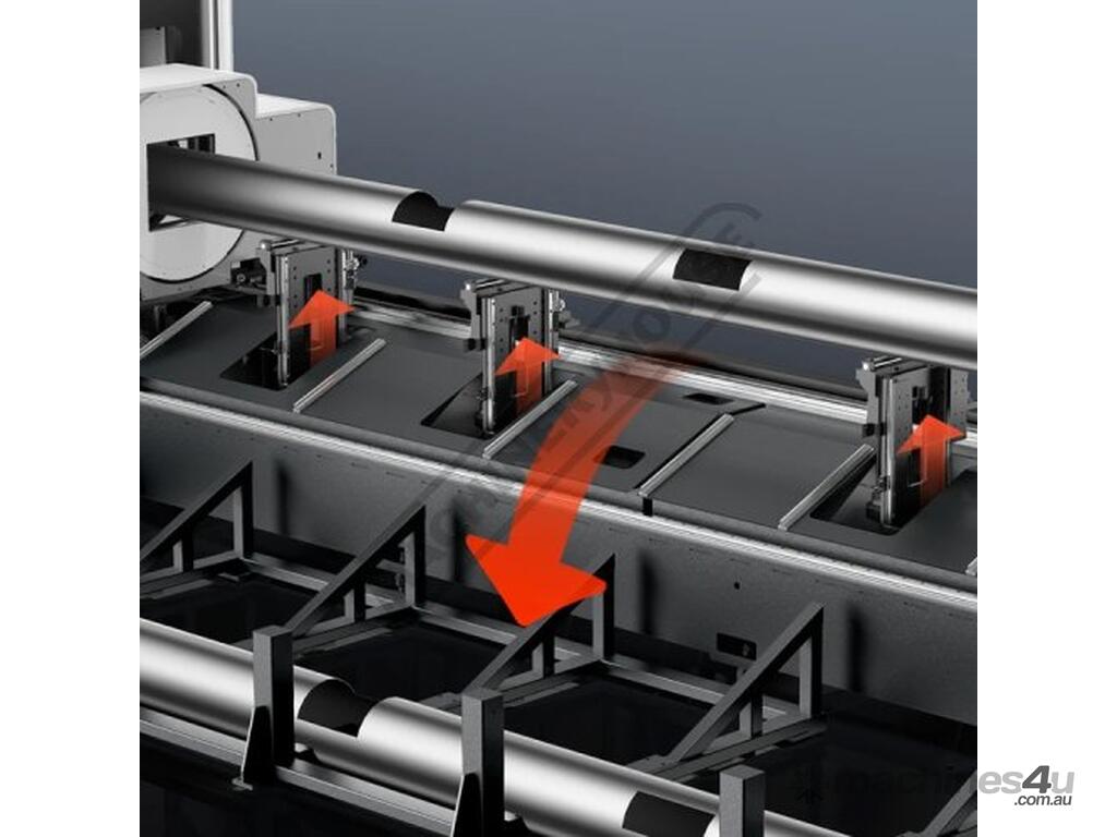 Follow-Up Rollers -(M2M3) With the support of follow-up rollers and smart centering the efficiency of loading and unloading is increased by 30% ensuring the tube remains stable even during high-speed rotation significantly enhancing cutting precision.