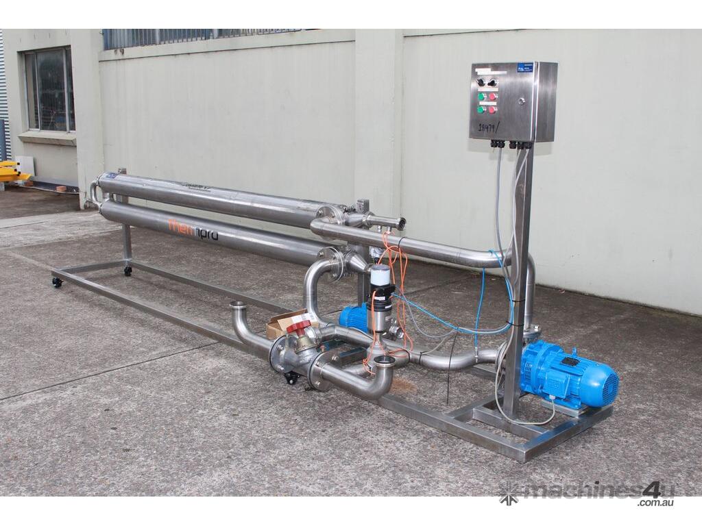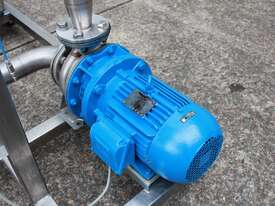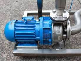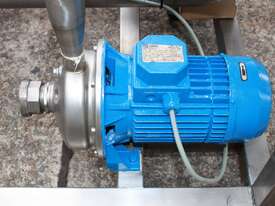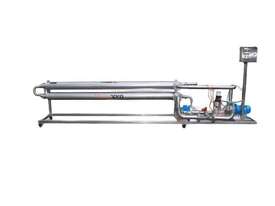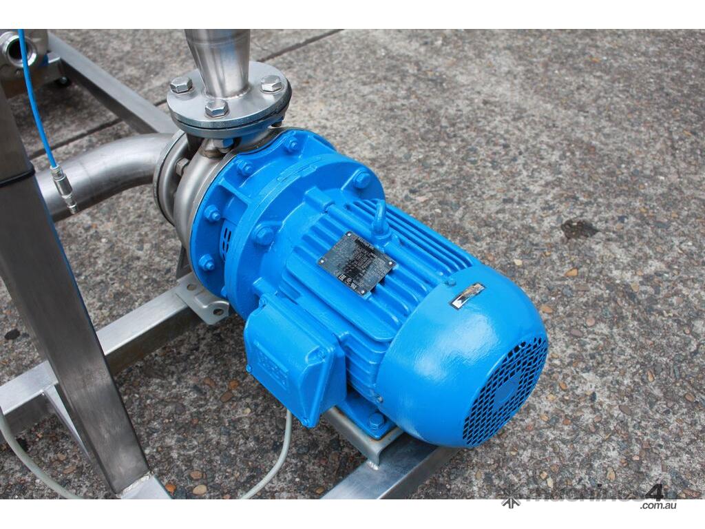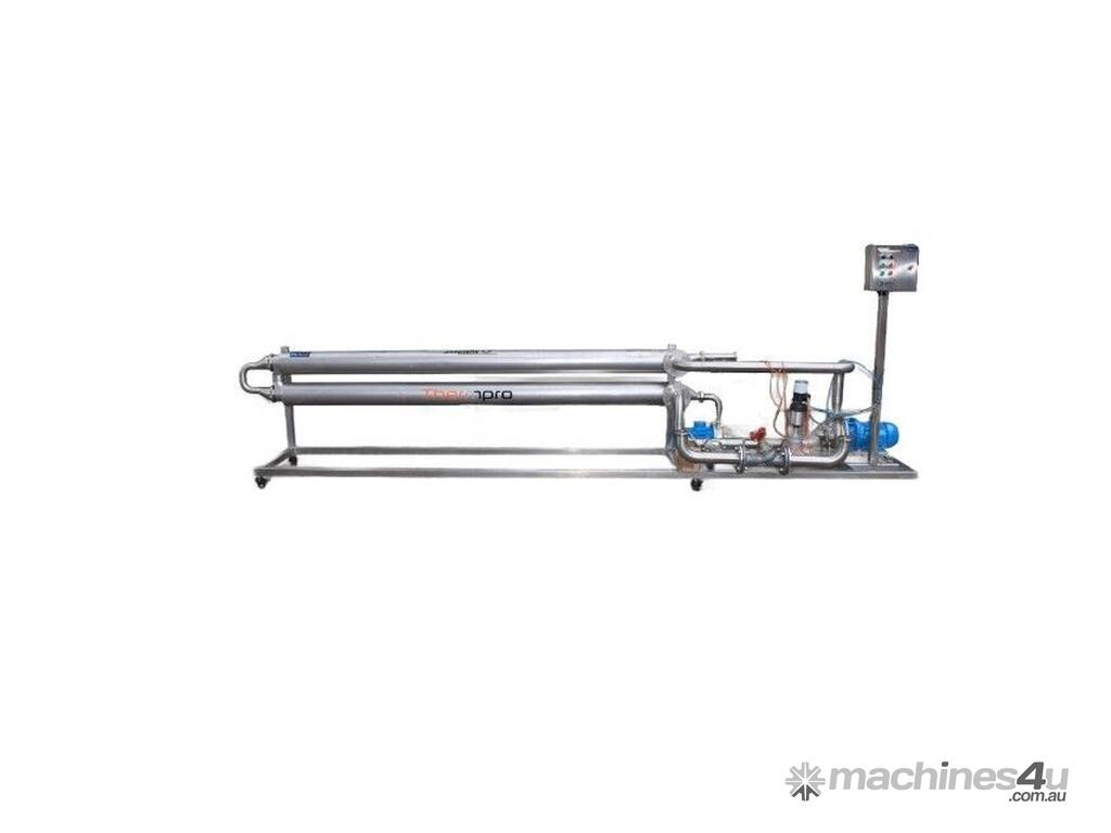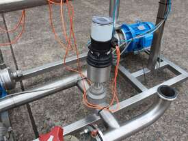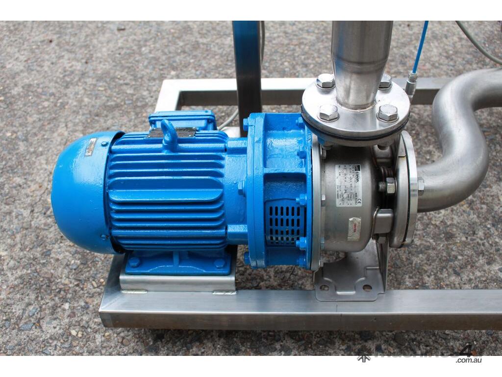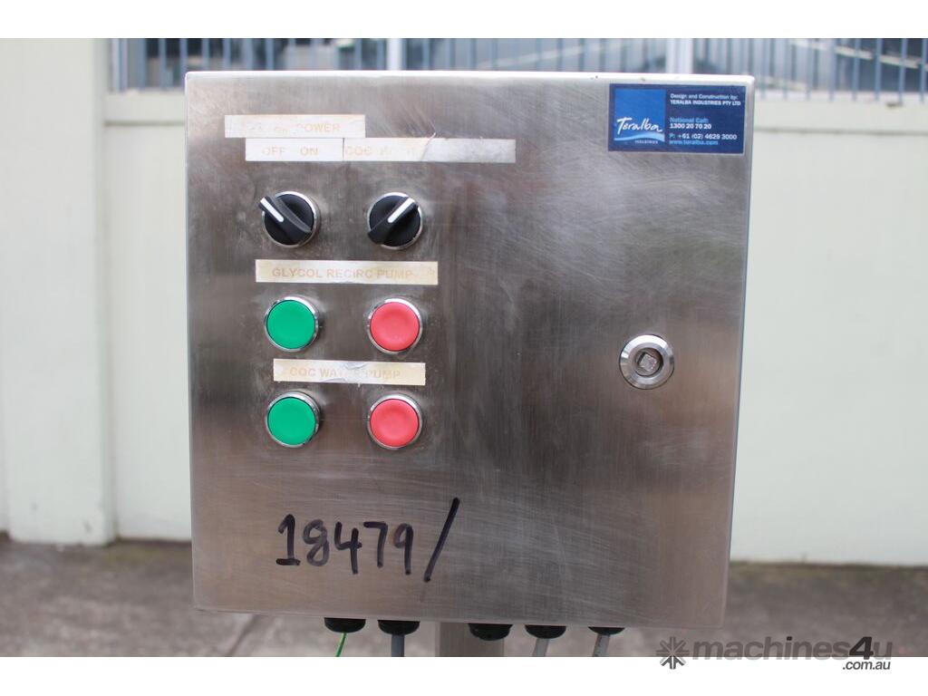 Tube Heat Exchanger with Circulation Pumps, "Teralba" Dimpleflo series, Model 2U31T, inner design pressure 600kpa, outer design pressure 600kpa, inner test pressure 860kpa, outer test pressure 860kpa, design temperature inner 50 deg C, design temperature outer 50 deg C, fully insulated, mounted on stainless steel framework, with 2 fluid pumps, shell side pump 3 phase 3kw, tube side pump 3phase 1.5kw with max. flow of 280l/m, "Burkert" digital flow meter, with electrical control panel, overal dimensions (L x W x H) 4900mm x 1000mm x 1660 mm
