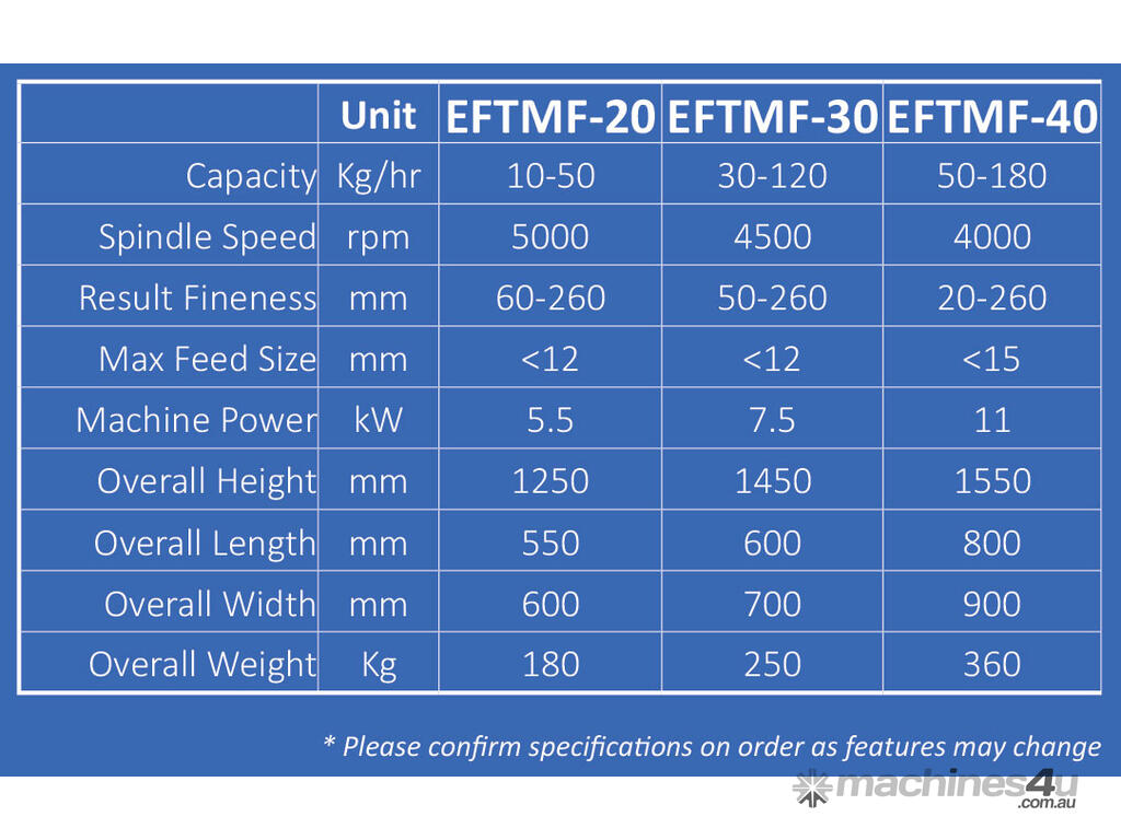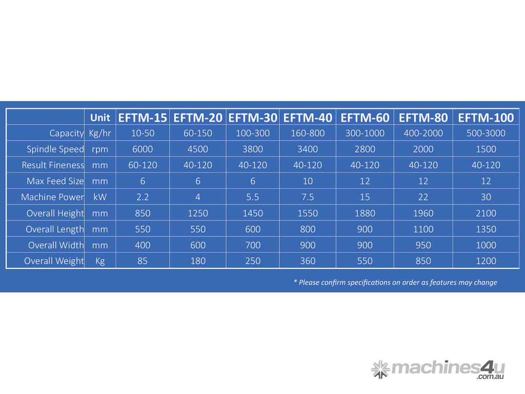 EFTM Turbine mills are used for pharmaceutical, food and chemical industry milling various type of materials with range of characteristics, hardness and fiber.