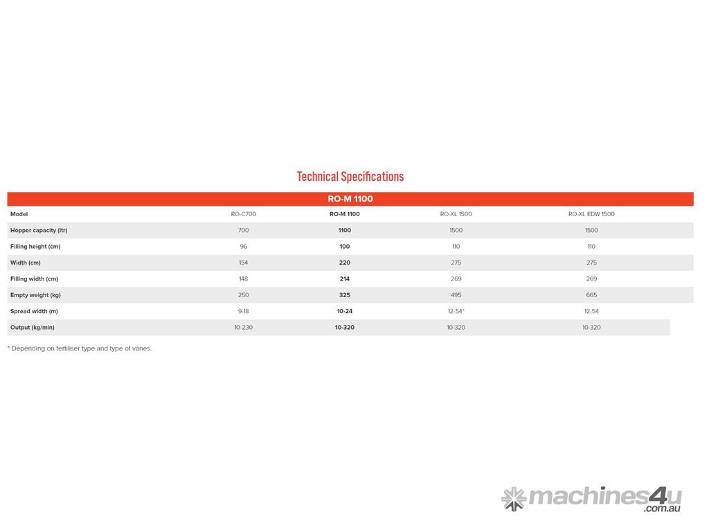 * Depending on fertiliser type and type of vanes.