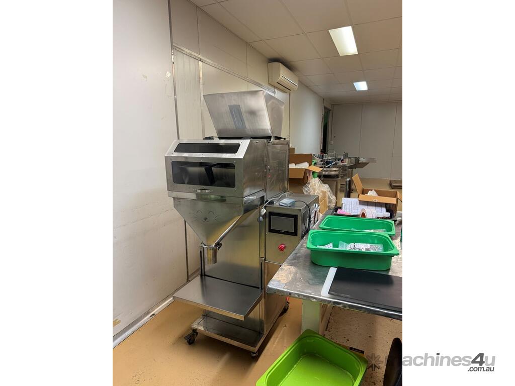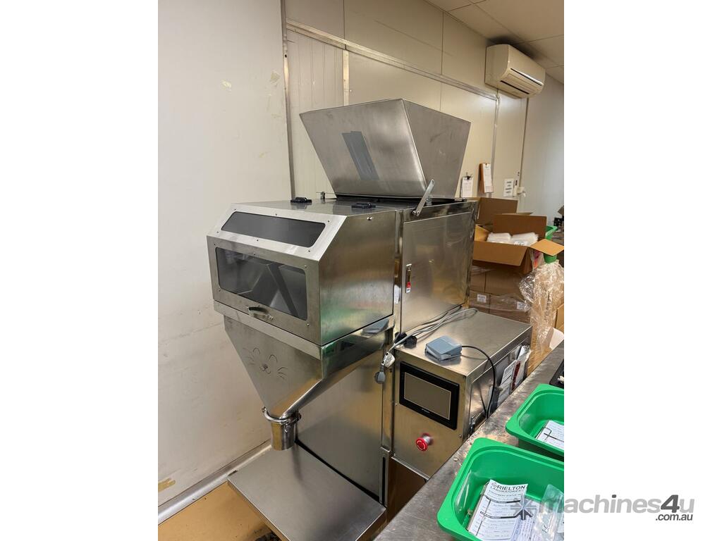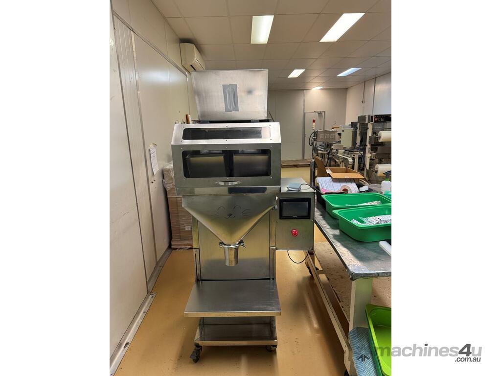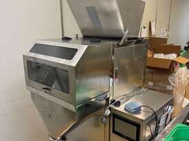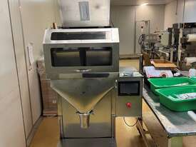 Twin Head Vibratory Weigh Filler, Stainless steel wetted parts and construction, with touch screen controller, approx, 1-2 kg per hopper/head depending the material. (unit fitted with 10kg load cells