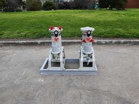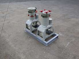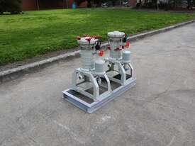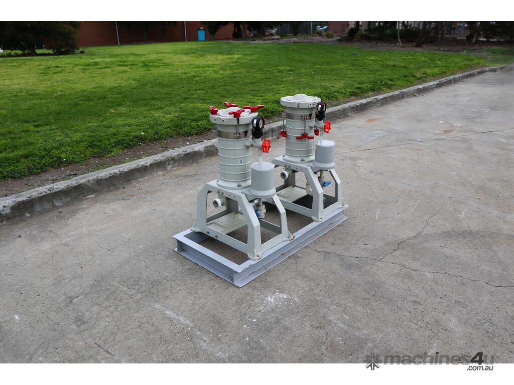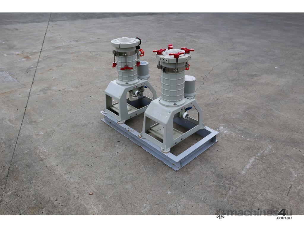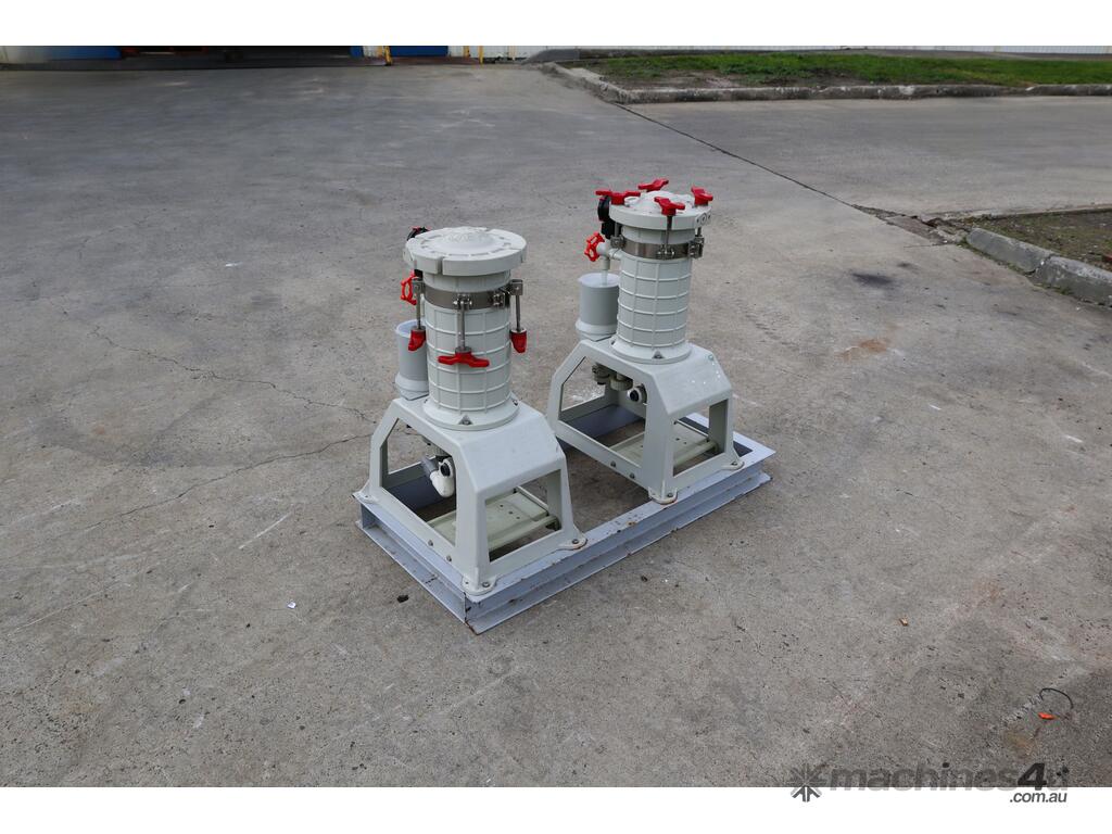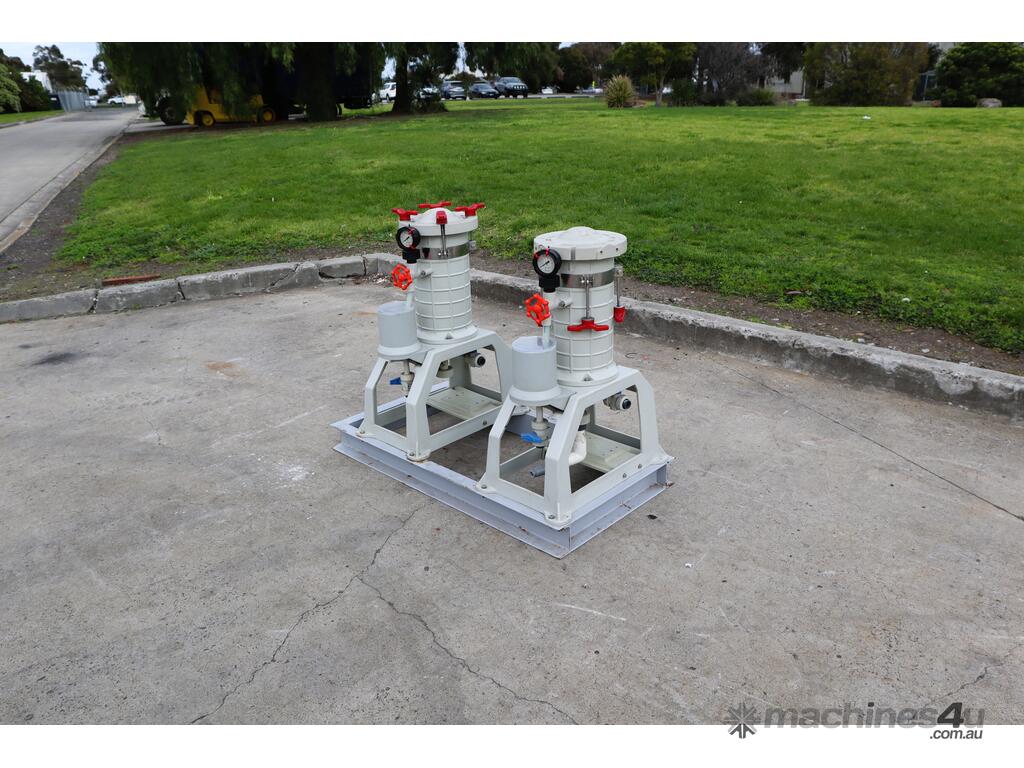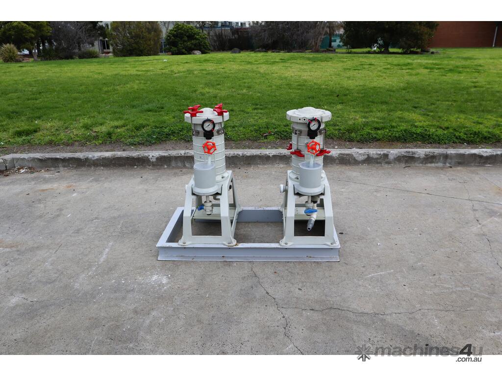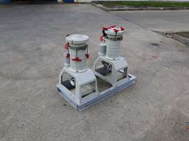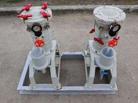 Pair of Lock Core Chemical Filters, mounted together on a welded steel skid.