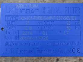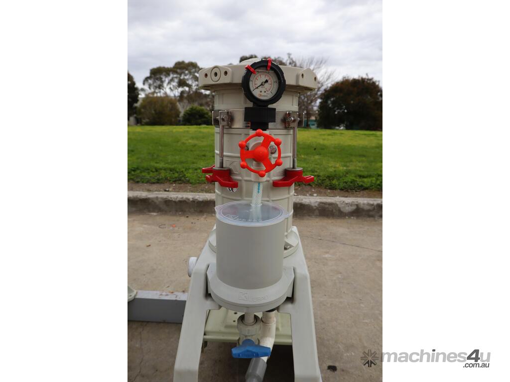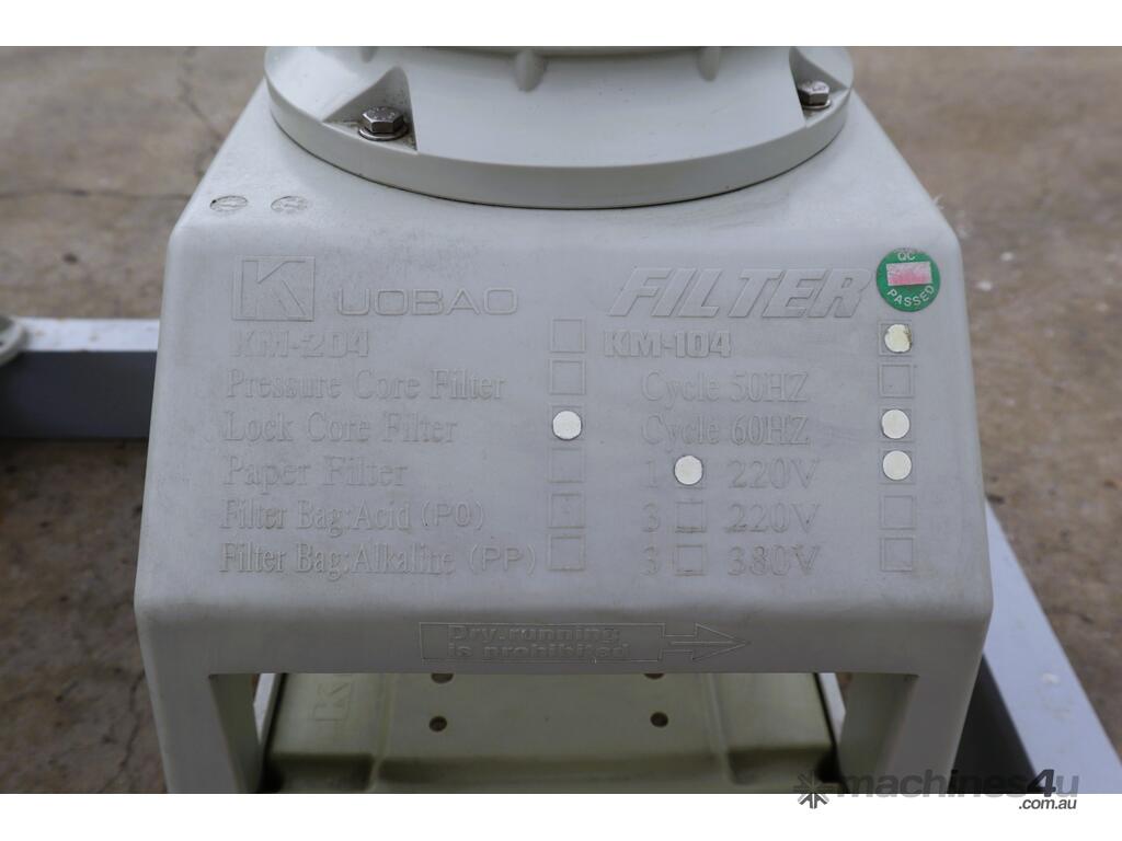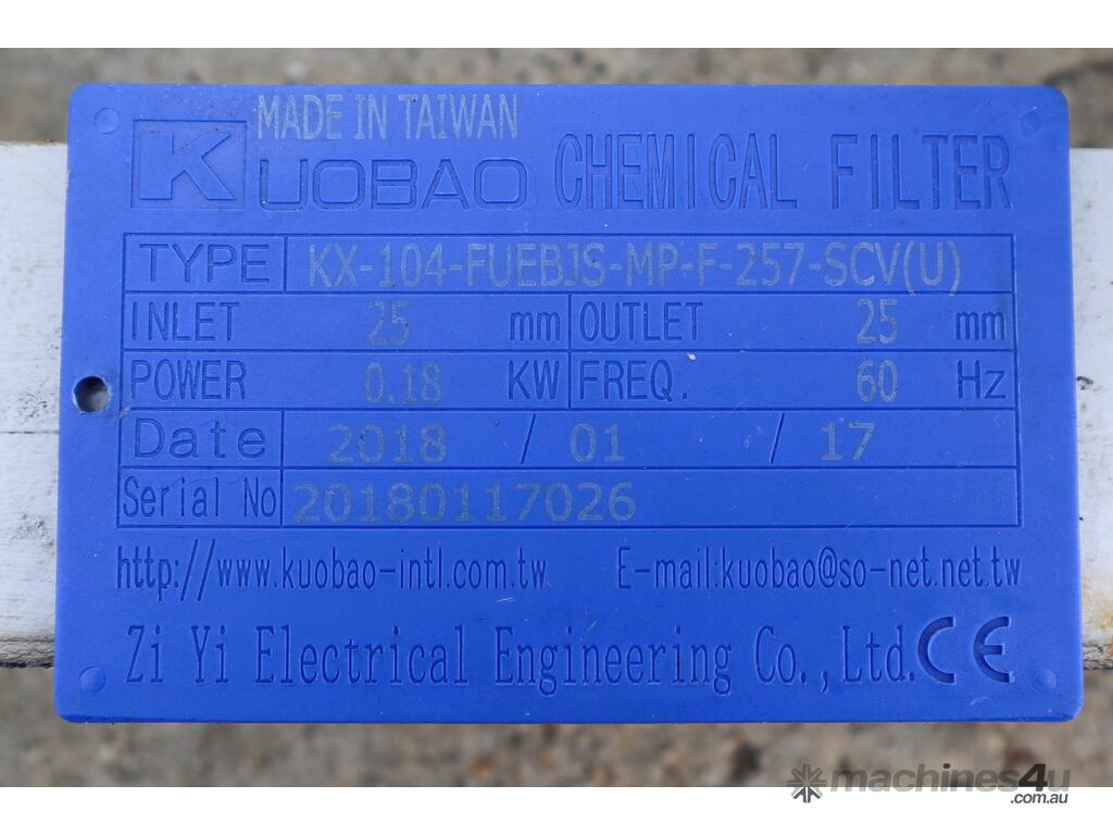 These compact chemical resistant filtration units are designed for electroplating baths, PCB etching lines, pure water recirculation, and general acid/alkali chemical processing etc. Each unit features a 0.18 kW magnetic drive pump for sealless circulation, acid and alkali resistant polypropylene housings, 25 mm inlet/outlet unions, and integrated pressure gauges for line monitoring.