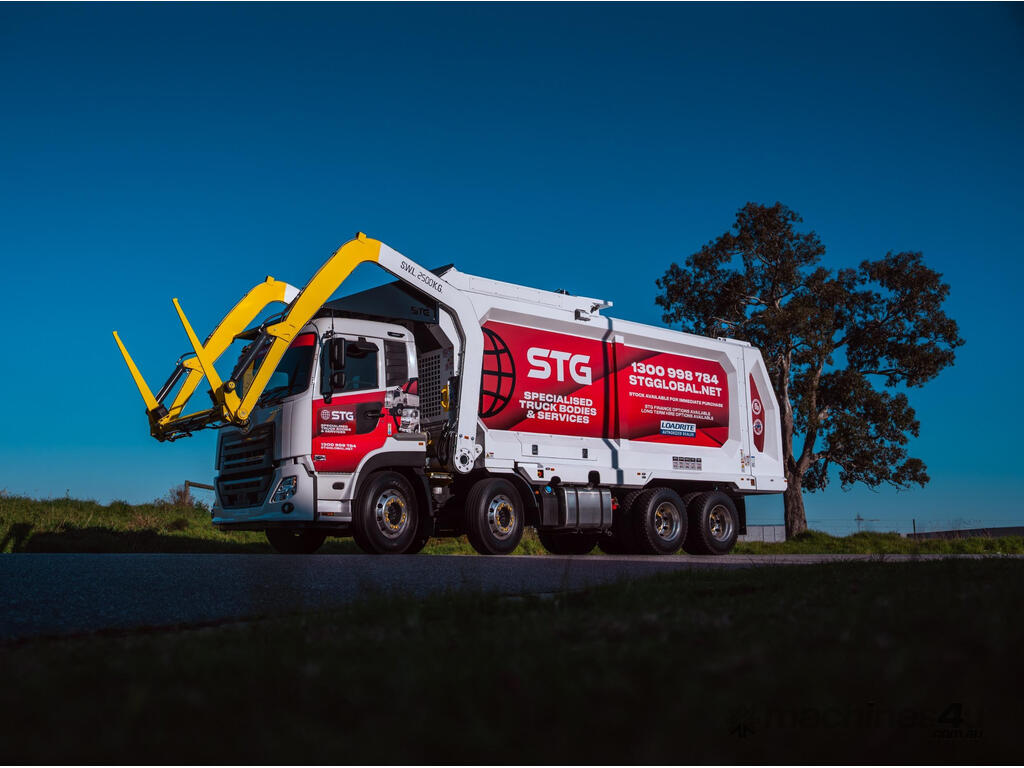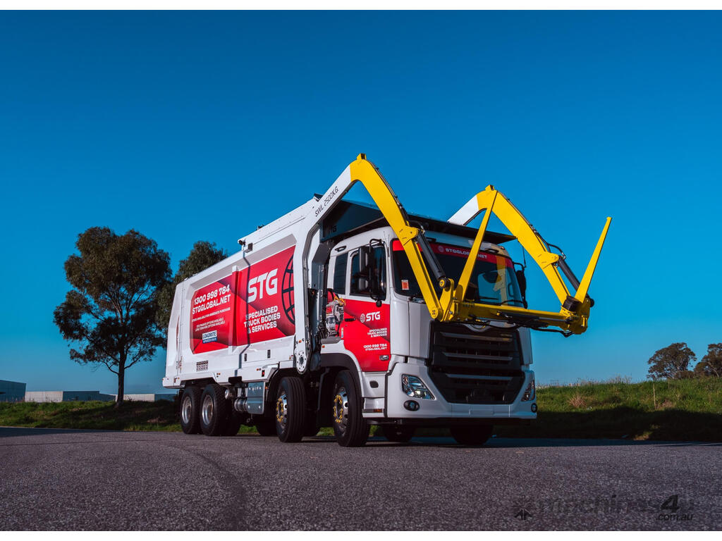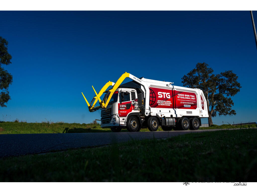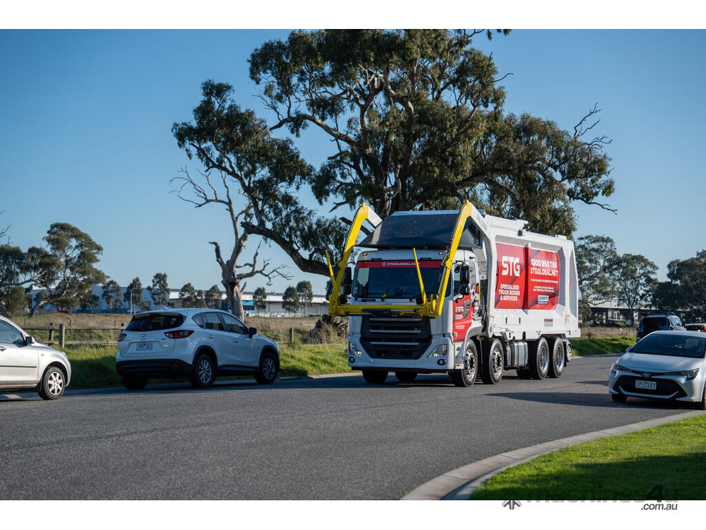 Description: Don't wait 12+ months - TRUCKS & MODULES IN STOCK NOWrBRAND NEW 2024 UD QUON AUTO 430HP 8x4 CAB CHASSISr* Also available on Isuzu, Volvo FM11 or otherrrKey Features:r- Choice of 31m3 or 33.5m3 Bodyr- In-House Financing Available r- Buy with confidence! 24/7 backup support and full range of parts stocked locallyr- Service Centres Australia Wider- Turn Key Package - let us take care of Road Registration, Signwriting, Delivery & Maintenance!r- Built for Australian Roads with Optimal Payload in mindr- Modern aerodynamic body designr- Triple butterfly top door assemblyr- Dual cylinder compactorr- Watertight tailgate sealr- Replaceable Neoprene slidesr- Individually controlled sliding front lifting forksr- Optimised body design with CoG to the rear axelr- Integrated storager- Easy access to hydraulic unitsrrSafety r- Equipped with emergency stopsr- Full OH&S compliance r- In-cab operator warning systemr- CANBus control system with 12" touch screen iPadr- Safety interlocks on body access pointsr- Pre-start electronic checklistr- Dual safety props for body and tailgater- Active rear door locking systemrrElectric & Hydraulic Controlsr- Hose burst and counterbalance valvesr- Compact on the move capability r- Auto compact featurer- Proportional control valvesr- s integrated iPad control system with full diagnostics r- 360 moveable joystick with full operations r- Enclosed hydraulics with easy service accessrrLighting r- Hella Shapeline rear light modules with animated behaviourr- Single rear-mounted Hella low profile beaconr- Dual front-mounted Hella low profile beaconsr- Reverse light and alarmr- Body mounted side-marker LEDsr- Body mounted rear-door LEDsr- Tailgate and side body-mounted work lightsrrStandard accessoriesr- Warranty 12 months/2500 hoursr- Technical manual r- Anti-slip side access ladder with safety interlocksr- Premium single 2 pac white colourr- Oil drip traysr- On-demand training upon deliveryr- Refresher training programsrrMaterial specificationsr- Body Side sheets 4 mm wear-resistant Hardox steelr- Body floor sheet 5 mm wear-resistant Hardox HiAce steelr- Body roof sheet 4 mm wear-resistant Hardox steelr- Compactor face sheet 5 mm wear-resistant Hardox steelr- Hopper wall sheet 3 mm wear-resistant Hardox steelr- Hopper floor sheet - 4 mm wear-resistant Hardox steelr- Hopper lids 3.2 mm wear resistant Hardox steelr- Tailgate sheet 3mm wear-resistant Hardox steelr- Compactor slide wear pads Oil filled nylonr- Fork blades 20 mm wear resistant Hardox steelrr* Finance T&C's apply. Price exclusive of GST. rSee our trucks in action on our page STGGlobal