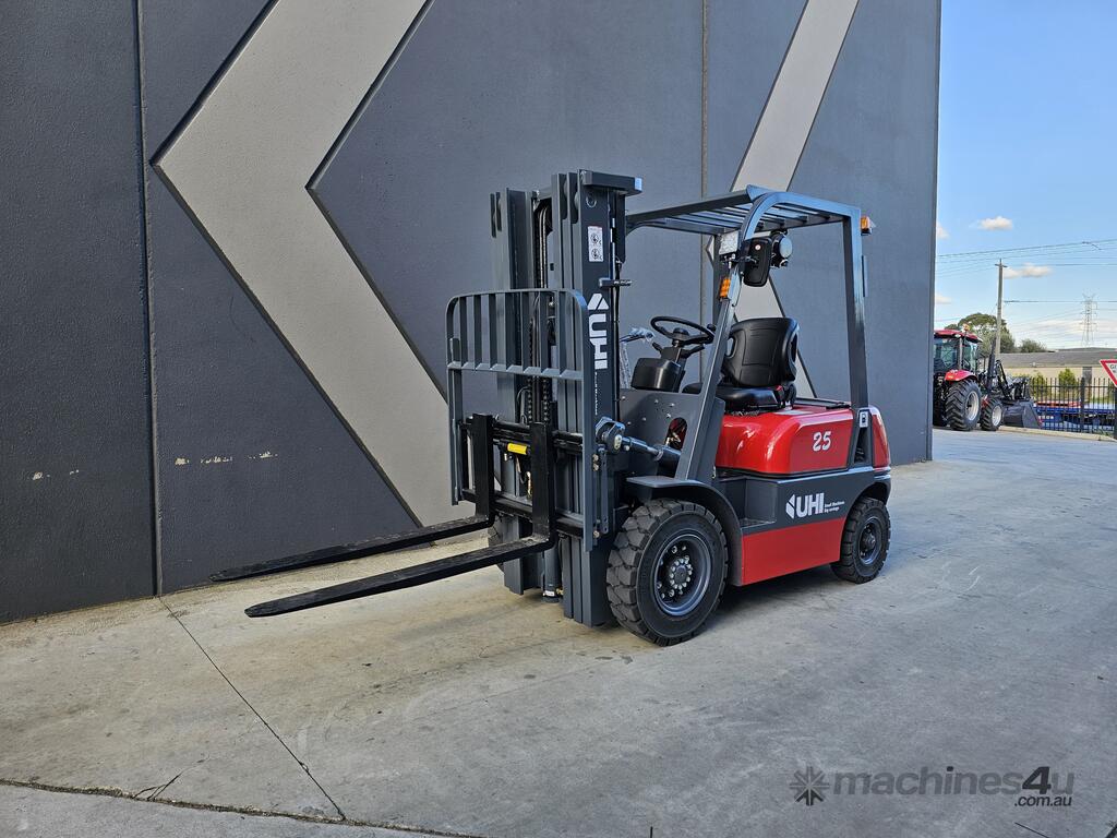 Introducing the UHI FD25 2.5T Diesel Forklift, the perfect solution for handling heavy loads on work site With its impressive 2.5T Loading capacity, this forklift is designed to tackle even the toughest tasks with ease.