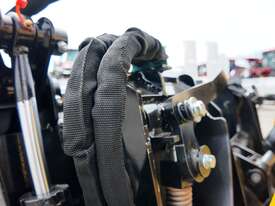 Quick-change Bobcat-style coupler (hydraulic) — compatible with a wide range of attachments.