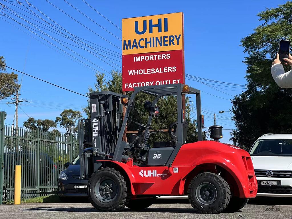 UHI FR35 3.5T Load Capacity Rough Terrain Diesel Forklift :      $27,264 AUD($29,990 Inc. GST)