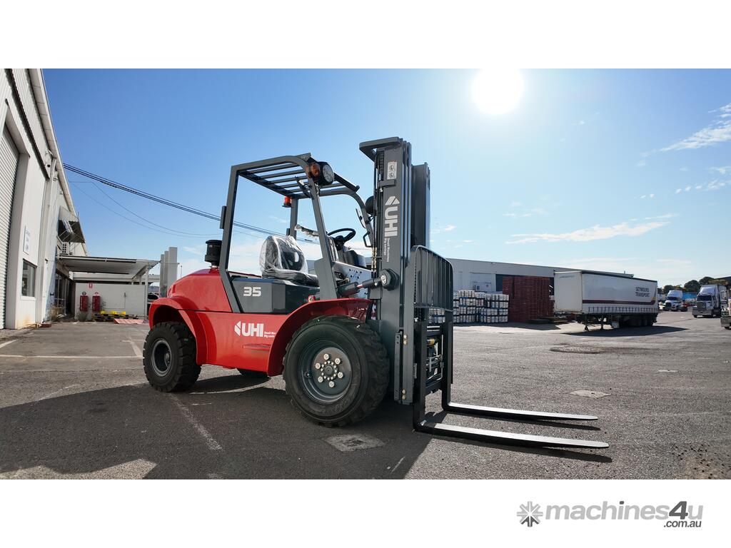 UHI FR35 3.5T Load Capacity Rough Terrain Diesel Forklift :      $25,445 AUD($27,990 Inc. GST)