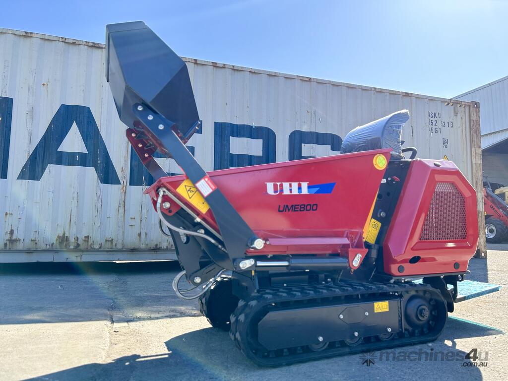 UHI UME800S Tracked, 800Kg load capacity. Fully hydraulic operated, Self loading mini dumper. Easily lift up to a height of 2980mm, easy loading to a Ute or trailer, and easy access to narrow space.