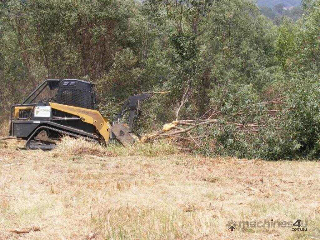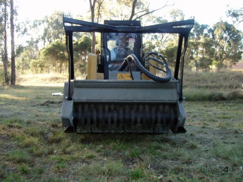 High Flow skid steer mulcher with several tooth options for different applications including a rock resistant tooth for tough areas.