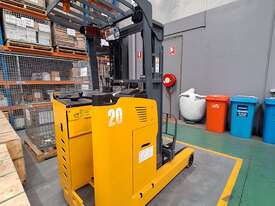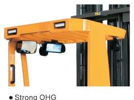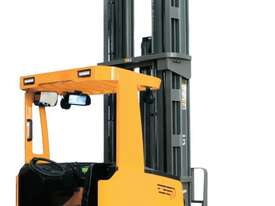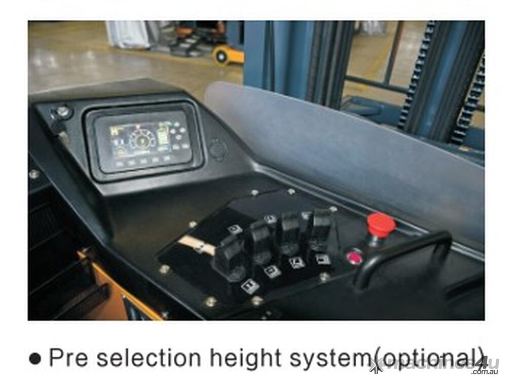 The UN 2.0T stand-in reach truck is a brand new, double-deep model with a 5.7 m lift height, engineered for high-efficiency warehouse operations.