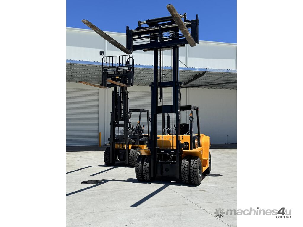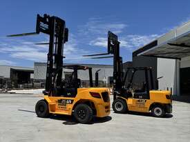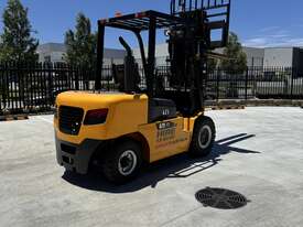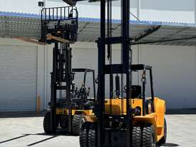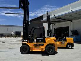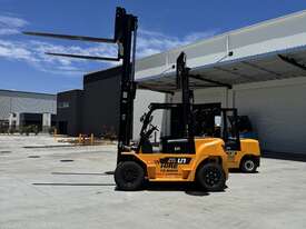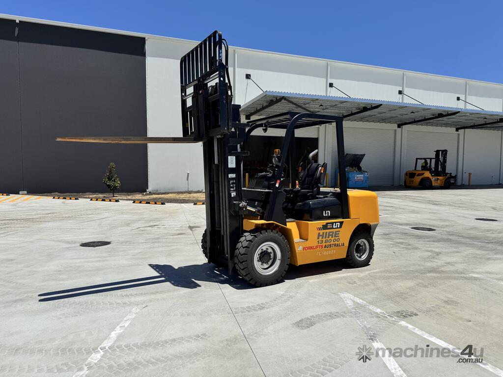 The UN 5.0T diesel forklift is a heavy-duty unit built for industrial and logistics environments. With a 5000kg capacity at a 500mm load centre and a 3000mm lift height, it provides strong and stable handling for demanding applications. Powered by a Mitsubishi S6S diesel engine, it delivers reliable performance with smooth operation and low vibration. Its wide chassis, powershift transmission and high ground clearance support safe movement across warehouse and yard surfaces.