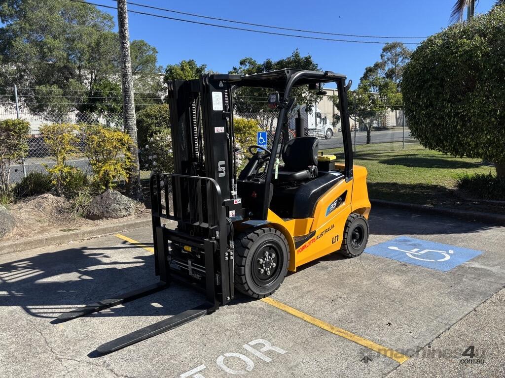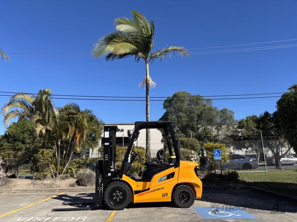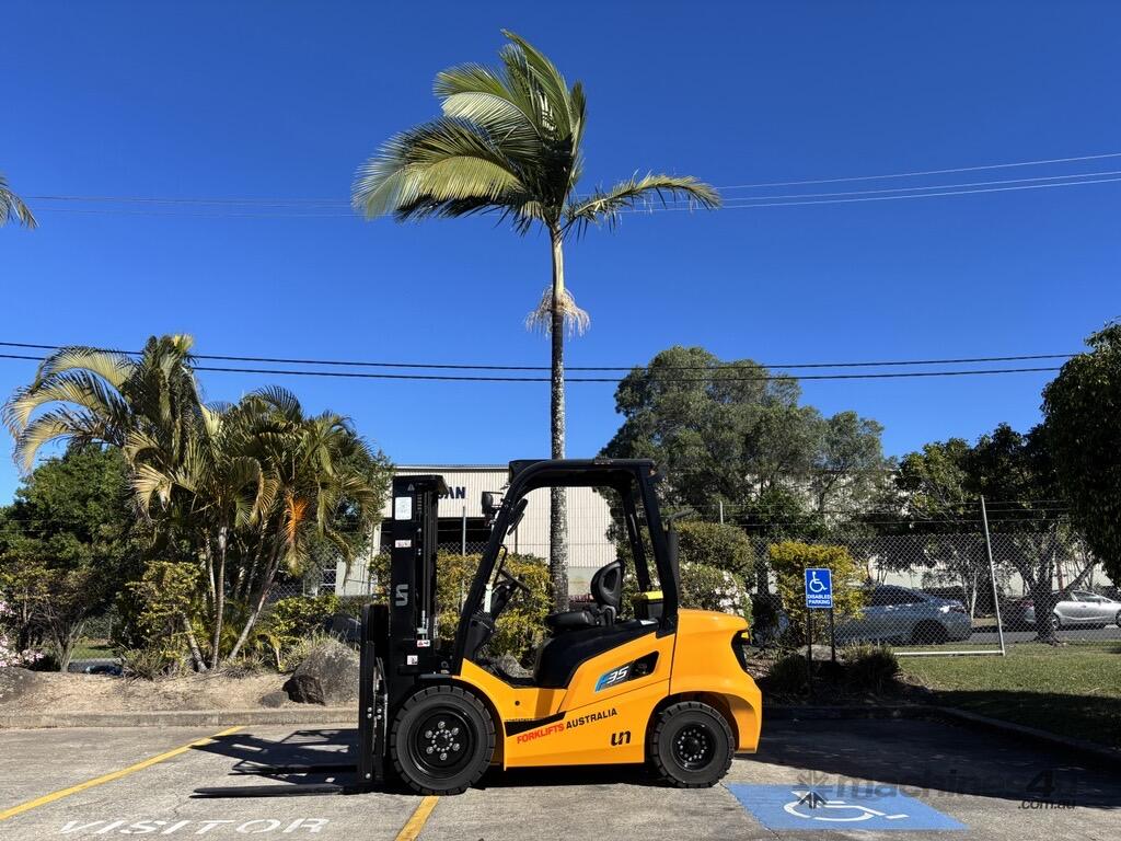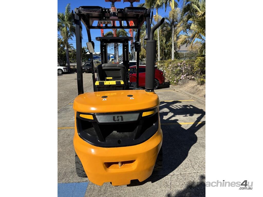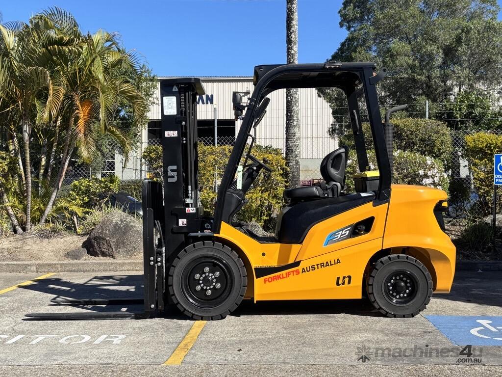 The UN FD35T-FJM1 is a reliable 3.5 tonne diesel counterbalance forklift designed for durability and efficiency in industrial, construction, and logistics environments. Powered by a Mitsubishi S4S diesel engine delivering 36.8 kW (49.3 hp), it provides dependable performance with low fuel consumption. With a rated lift capacity of 3,500 kg and a maximum lift height of 3,000 mm, it’s built to handle heavy-duty material handling tasks with ease.