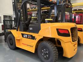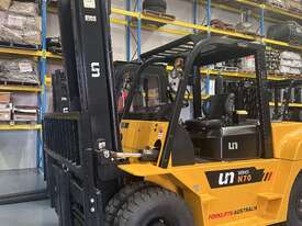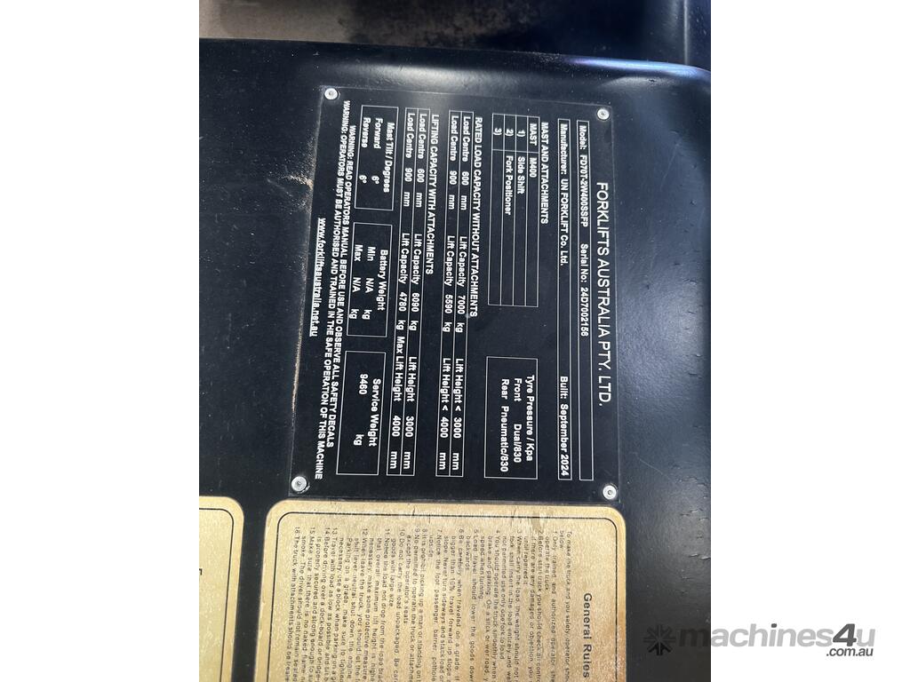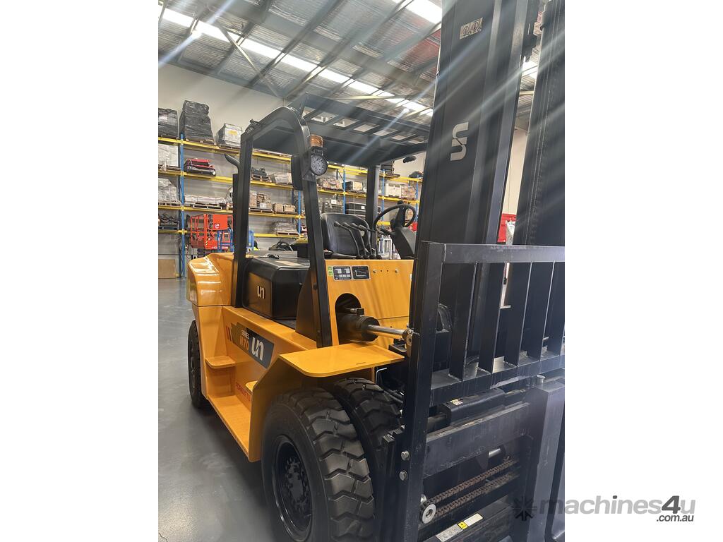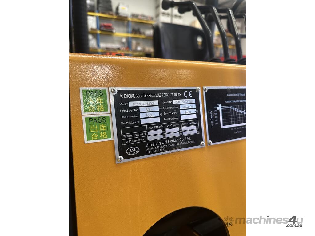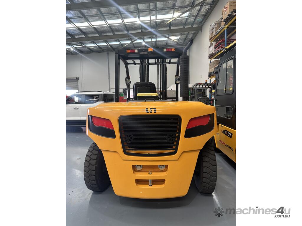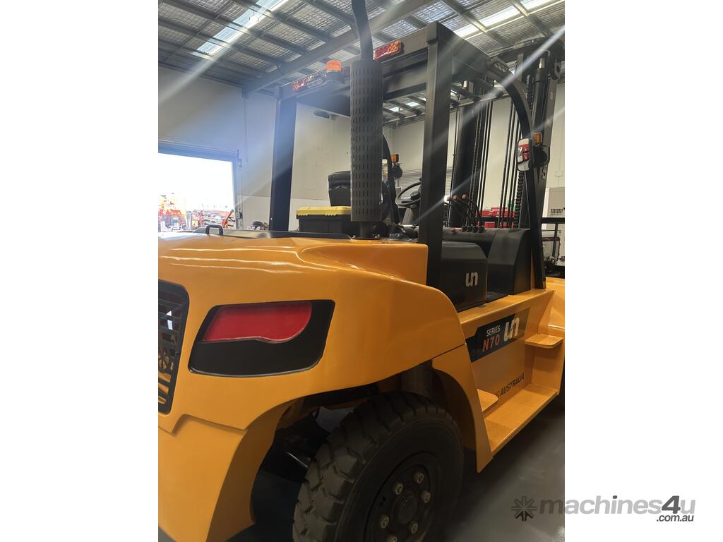 The UN N70 7.0T Diesel Forklift is a strong and reliable machine designed for heavy lifting. It can carry up to 7,000kg and lift loads up to 3 metres (9ft 10in). The diesel engine and automatic transmission make it easy to drive and well-suited for outdoor use. A tight turning radius of 3.1 metres helps in busy work areas, and 190mm of ground clearance allows it to handle uneven ground. With wide forks and strong hydraulics, this forklift is made to move big loads with ease.