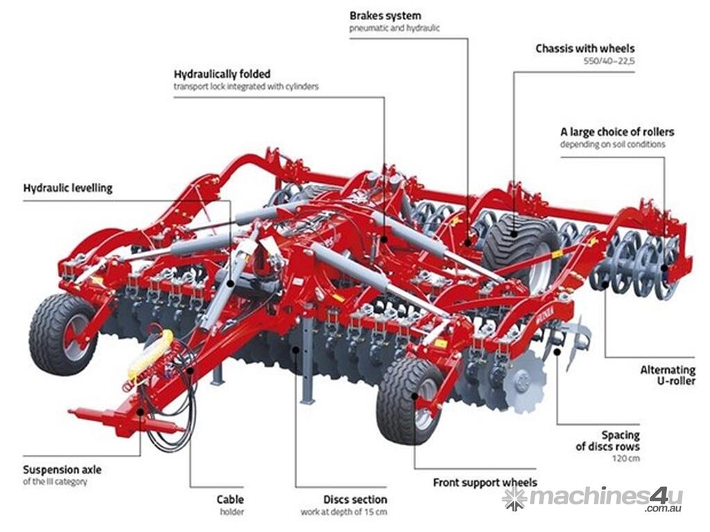 The Unia Ares HP TX is a semi-mounted disc cultivator available in 5, 6 and 8m models. Large diameter discs enable aggressive cultivation and mixing of soil with large amounts of crop residues at a working depth of 15cm. Hydraulic folding for transport.