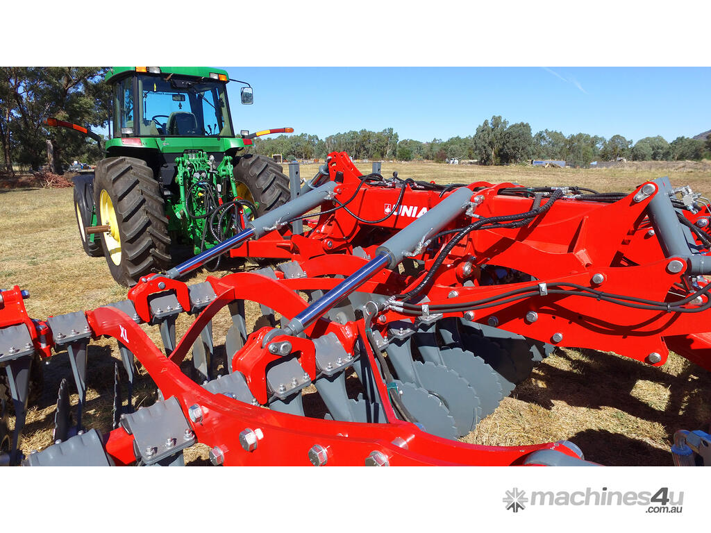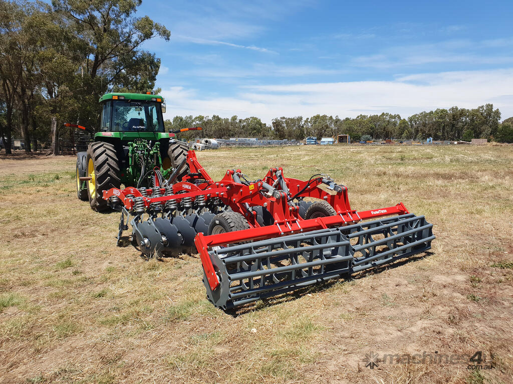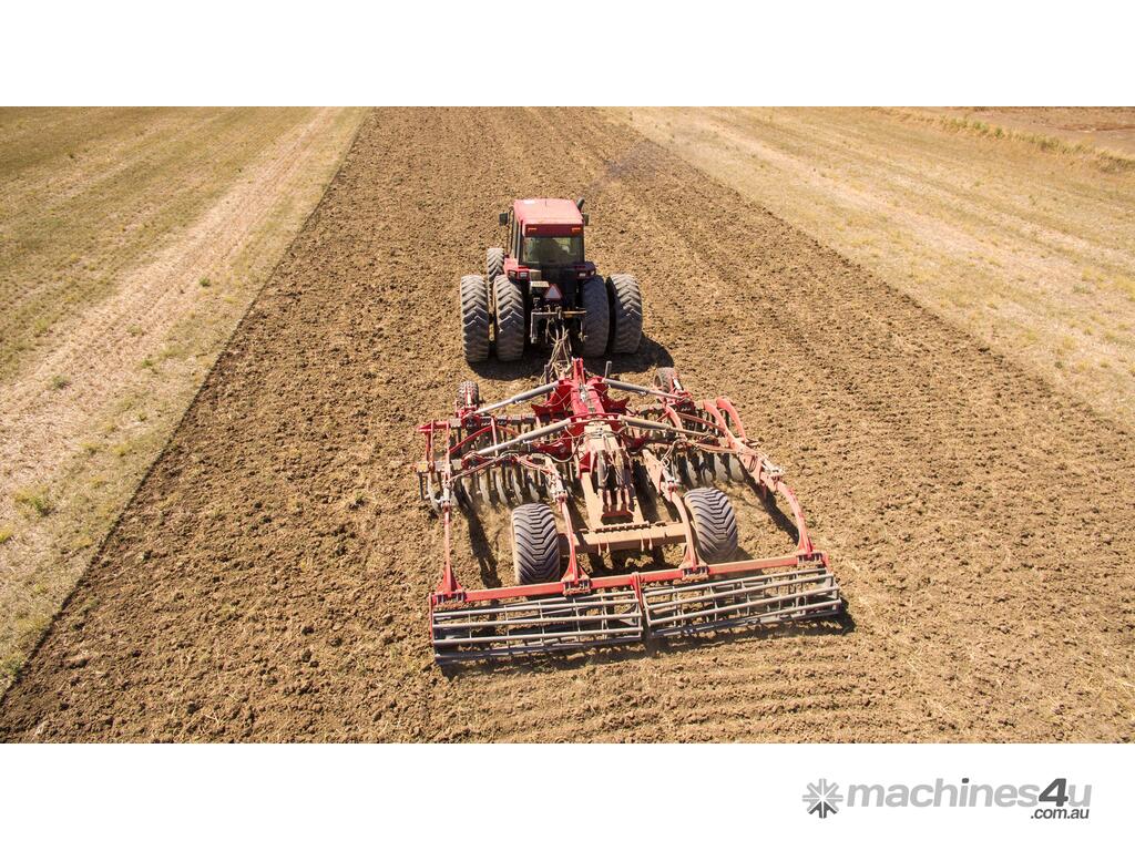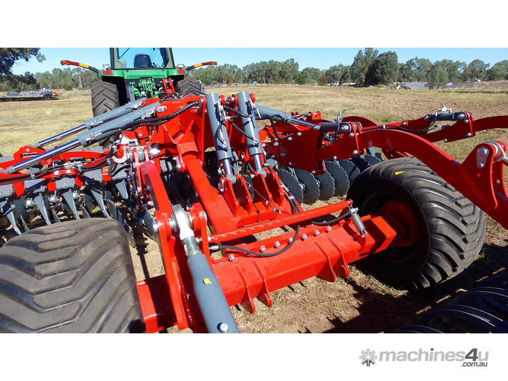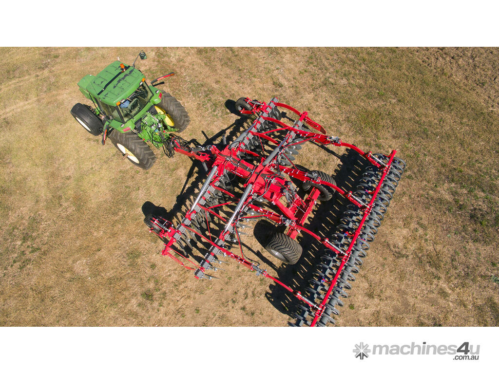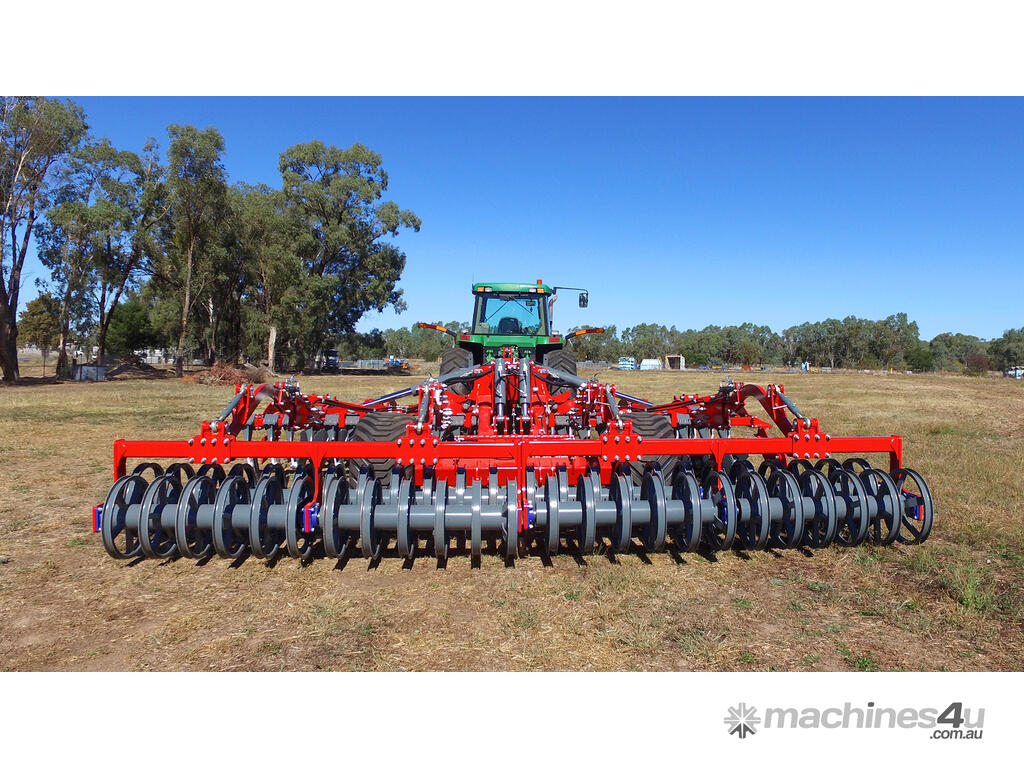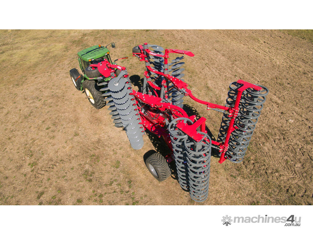 These machines come with two rows of corrugated discs angled in opposite directions from each other. These large-diameter discs enable aggressive cultivation and mixing of soil with large amounts of crop residues at a working depth of 15 cm.
