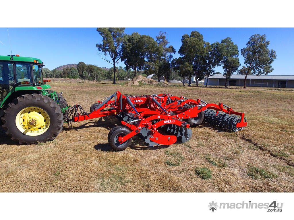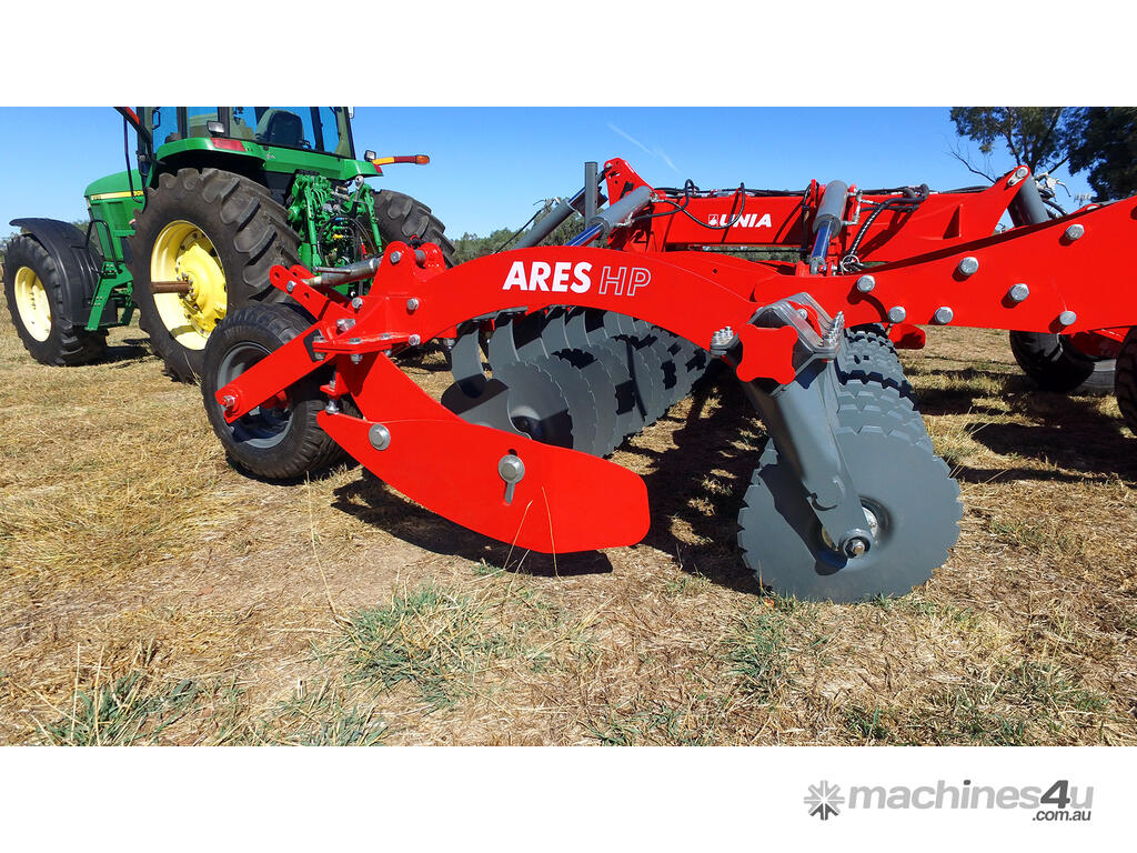 The UNIA Ares HP comes from a long line of Ares heavy-duty speed discs and is in fact, the heaviest of the bunch. It is a semi-mounted disc cultivator available in 4-m, 5-m, and 6-m wide models. Each requires a 210-, 230-, and 260-HP power output from any tractor
