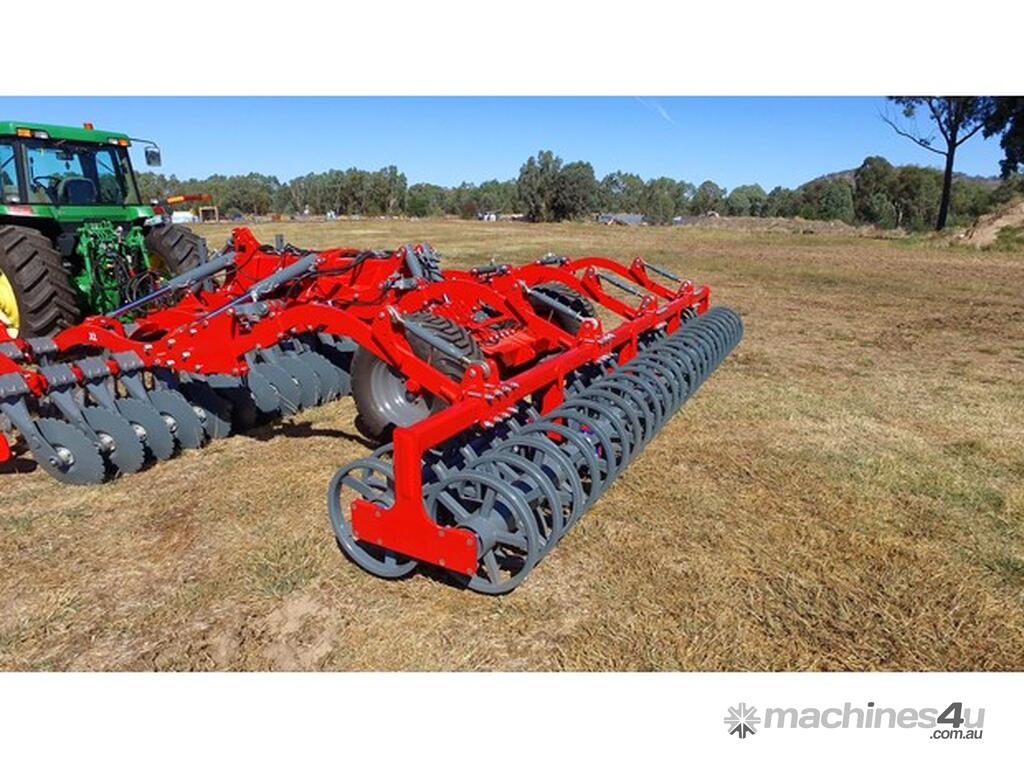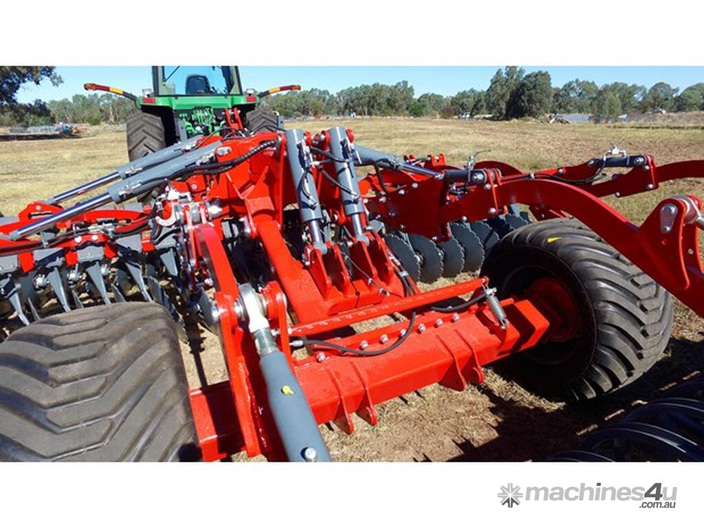 These machines come with two rows of corrugated discs angled in opposite directions from each other. These large-diameter discs enable aggressive cultivation and mixing of soil with large amounts of crop residues at a working depth of 15 cm.
