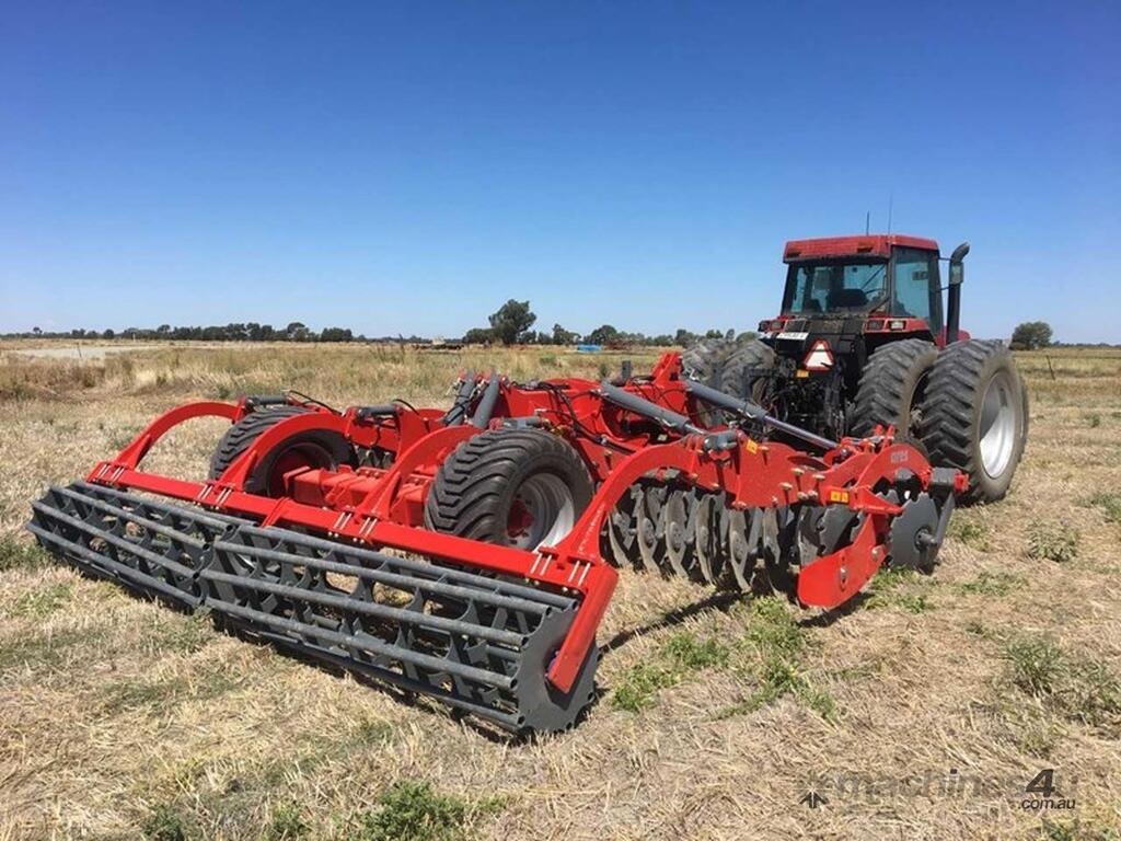 These machines come with two rows of corrugated discs angled in opposite directions from each other. These large-diameter discs enable aggressive cultivation and mixing of soil with large amounts of crop residues at a working depth of 15 cm.