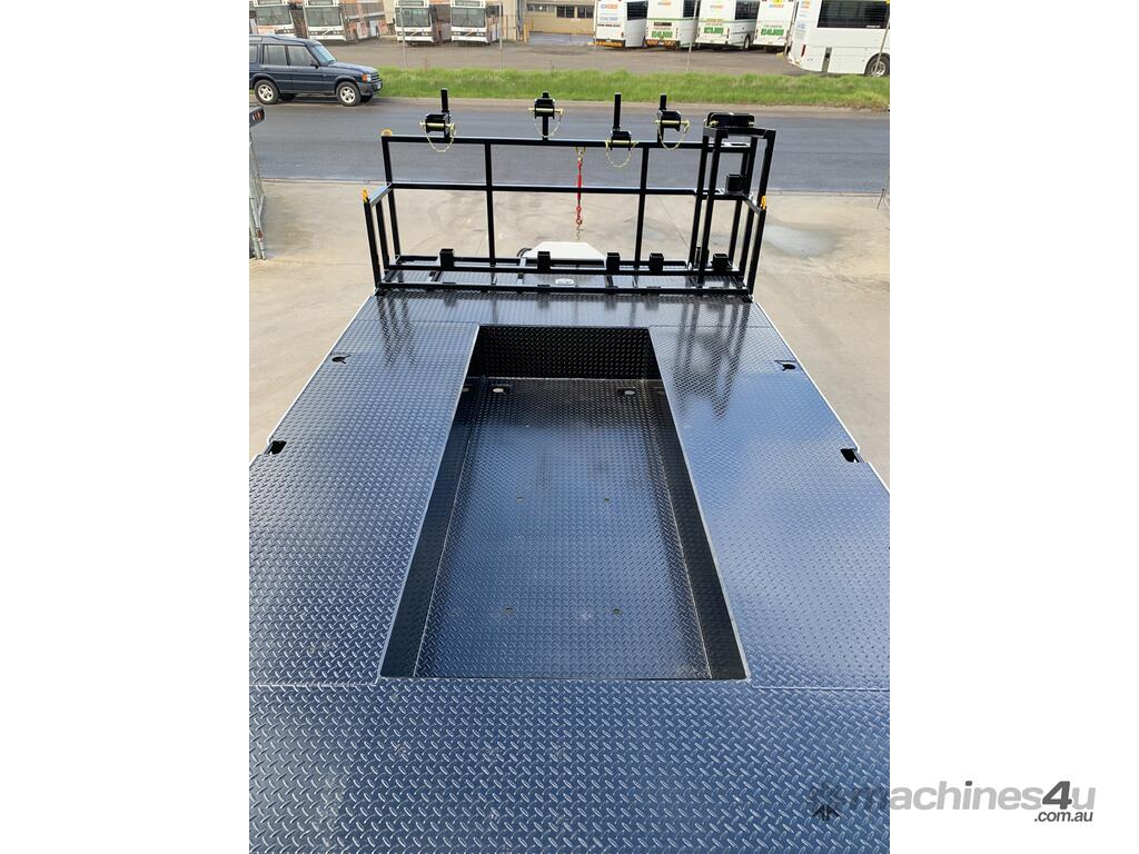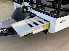 - 2400mm x 850mm 240mm x 150mm x 5mm RHS, checker plate sheeted Hydraulic ramps with greaseable bushes