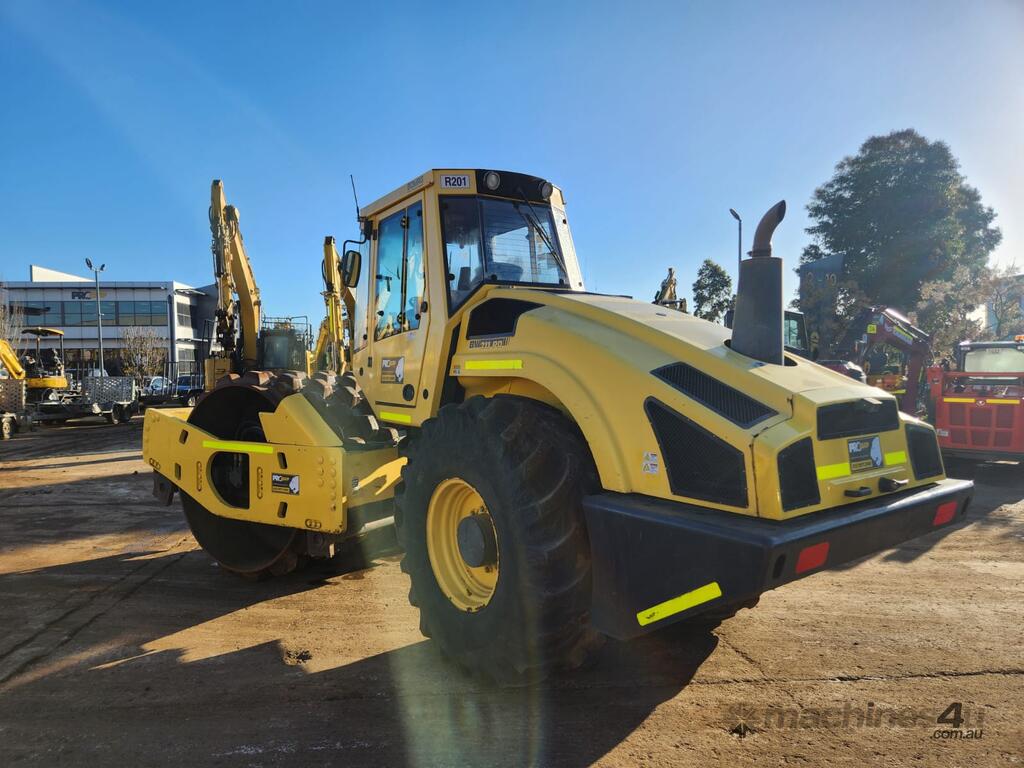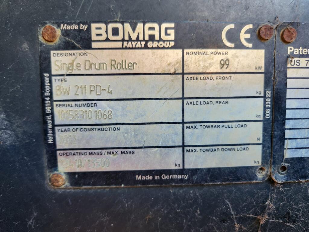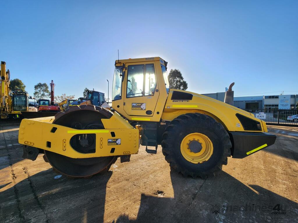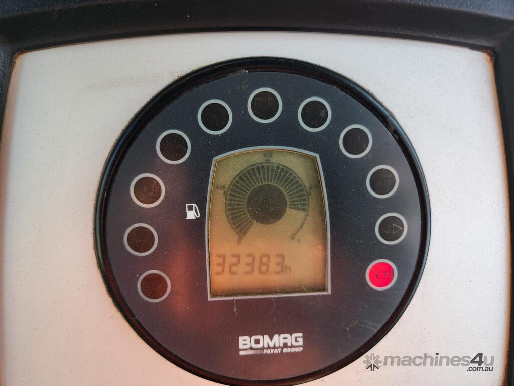 USED 2012 BOMAG BW211PD-4 12t SMOOTH DRUM ROLLER WITH FULL A/C CABIN AND 3250 HOURS. FULL SERVICE HISTORY, TIER 1 CIVIL SPEC, REAR VIEW CAMERA, UHF RADIO, E-STOPS, BATTERY ISOLATOR, REVERSING SQUAWKER, DUAL FREQUENCY AND AMPLITUDE VIBRATION SYSTEM, ADJUSTABLE SEAT AND WORK LIGHTS.