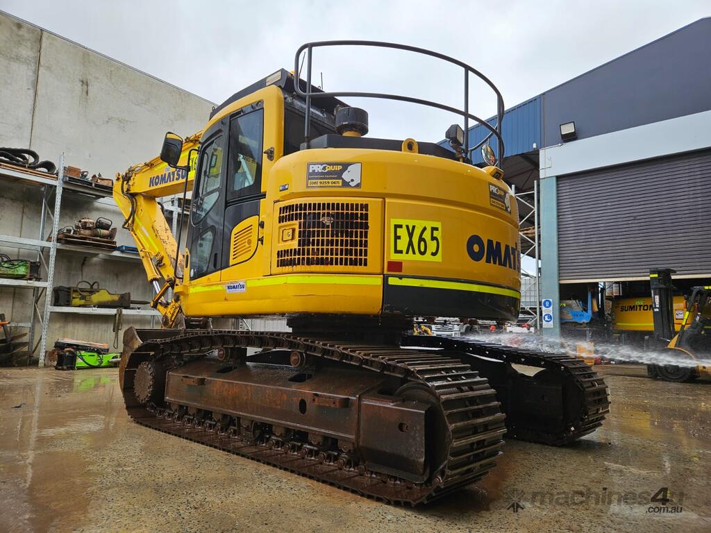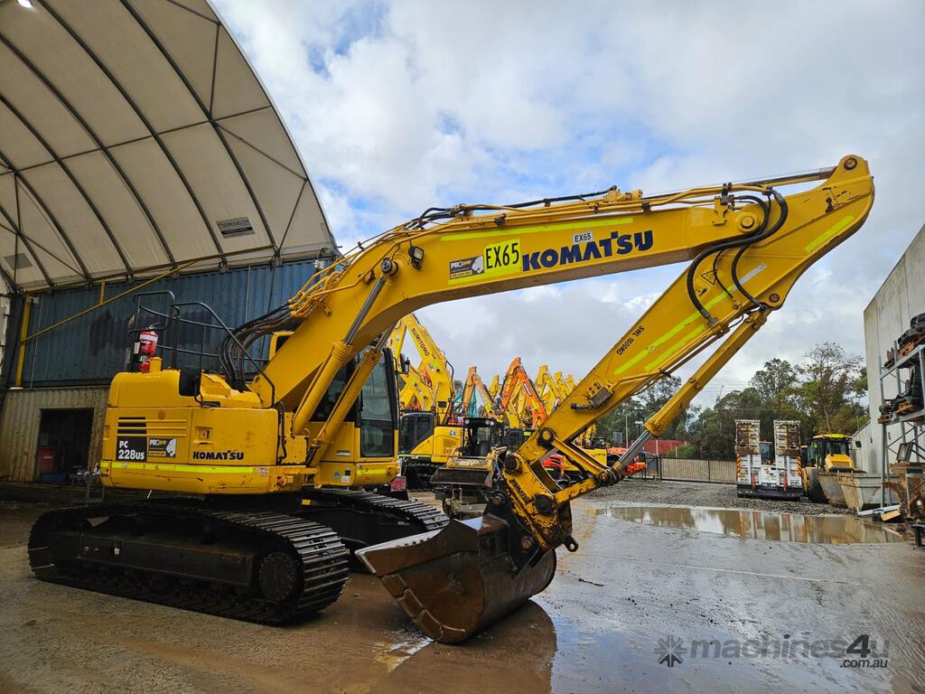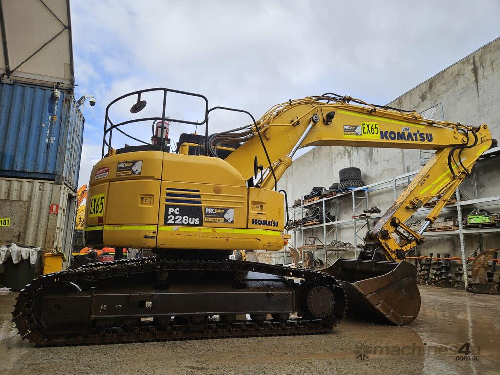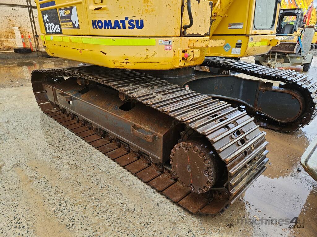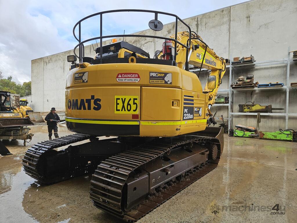 2018 KOMATSU PC228US-8 24t EXCAVATOR (EX65) WITH 3750 HOURS, REDUCED RADIUS, STEEL TRACKS, HYDRAULIC SAFETY HITCH, FULL A/C CABIN WITH ROPS, TWO WAY FLOW AUXILIARY HYDRAULICS, REAR VIEW CAMERA, SAFETY HANDRAILS, CHECK VALVES, UHF RADIO, E-STOPS, FULL CIVIL SPEC, GP AND MUD BUCKET.