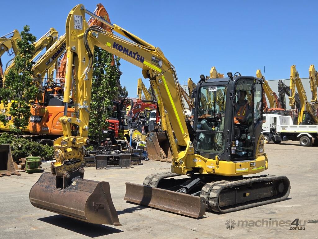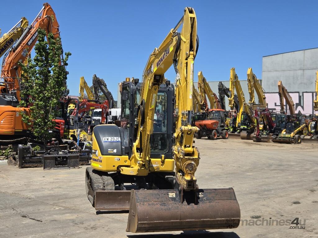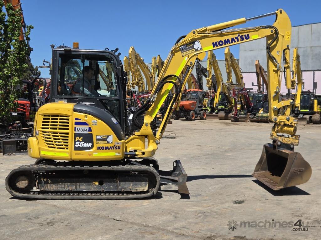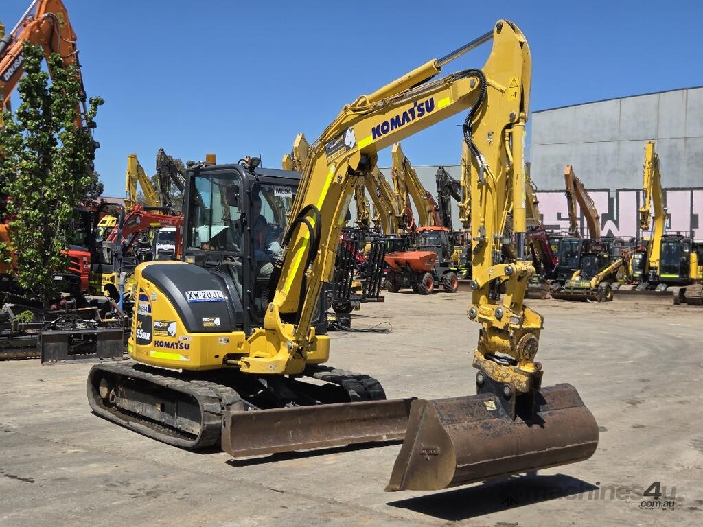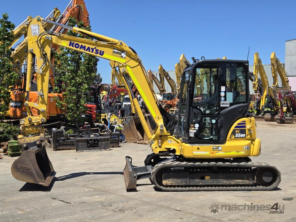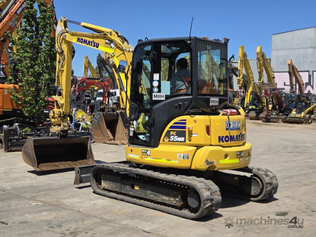 2022 KOMATSU PC55MR-5 5.5t ZERO SWING EXCAVATOR (M894) WITH FULL A/C CABIN, HYDRAULIC TILT QUICK HITCH, LOW 1590 HRS, FULL CIVIL SPEC, E-STOPS, BATTERY ISOLATOR, REVERSING SQUAWKER, FIRE EXTINGUISHER, 300, 400 & 600mm BUCKETS, MUD BUCKET, AUXILIARY HYDRAULICS FOR HAMMER & AUGER, RUBBER TRACKS, DOZER BLADE, WORK LIGHTS, VERY TIDY UNIT, FULLY SERVICED AND READY FOR WORK. AUSTRALIAN DELIVERED MAY 2022, 3-MONTH DRIVETRAIN WARRANTY APPLIES