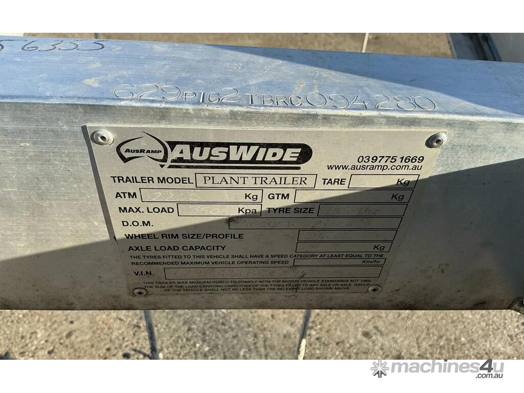 Auswide aluminium tandem plant trailer with Load Ramps , ATM 2200Kg,5 Stud wheels, 50 mm Tow Ball Hitch, Cable Handbrake, 7 Pin Rectangle Plug , Jockey wheel, load restrain kit, Vin. 629P G2 TBRC 094280, registered, 2024 model, as new condition, $6,,495.00+GST