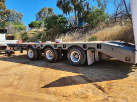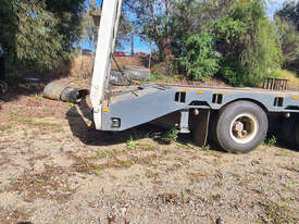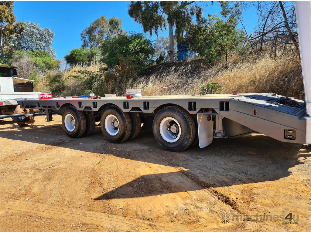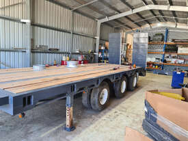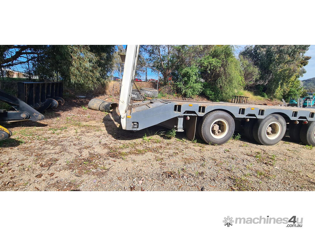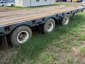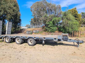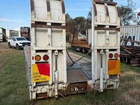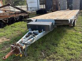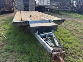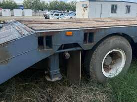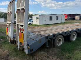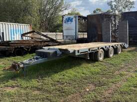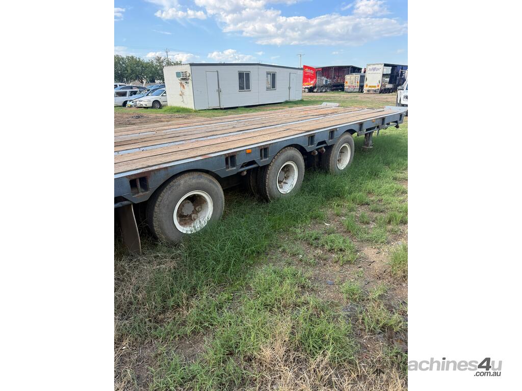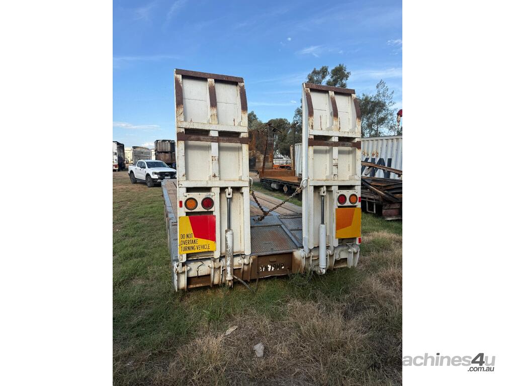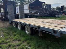 USED 1989 LUSTY TRI-AXLE PLANT TRAILER WITH RING FEDER HITCH, TIMBER DECKING, SOLID CHAIN POINTS IN COMBING RAILS, HYDRAULIC RAMPS, LOW DECK HEIGHT FOR EASY LOADING, VERY STRONG TRAILER. 45,000kg ATM RATED