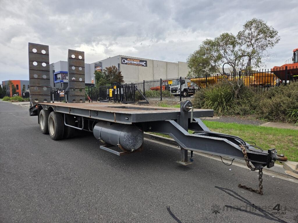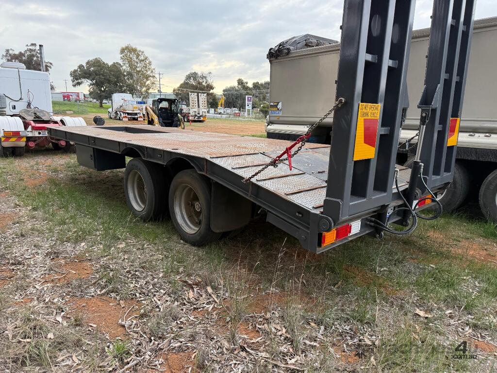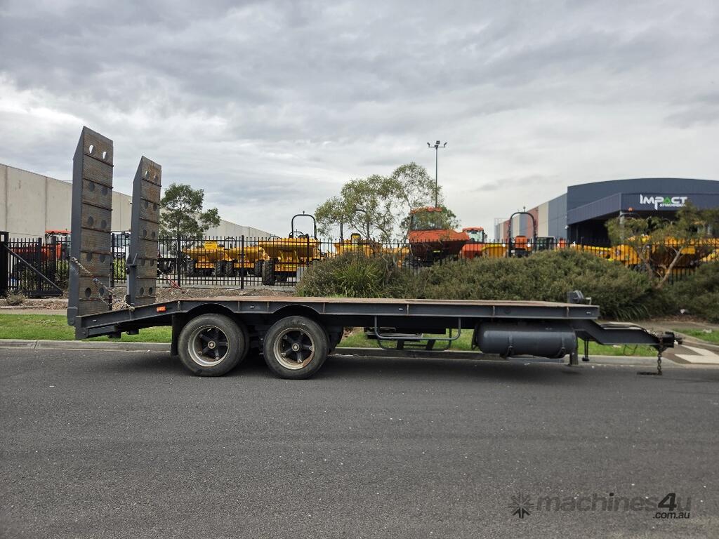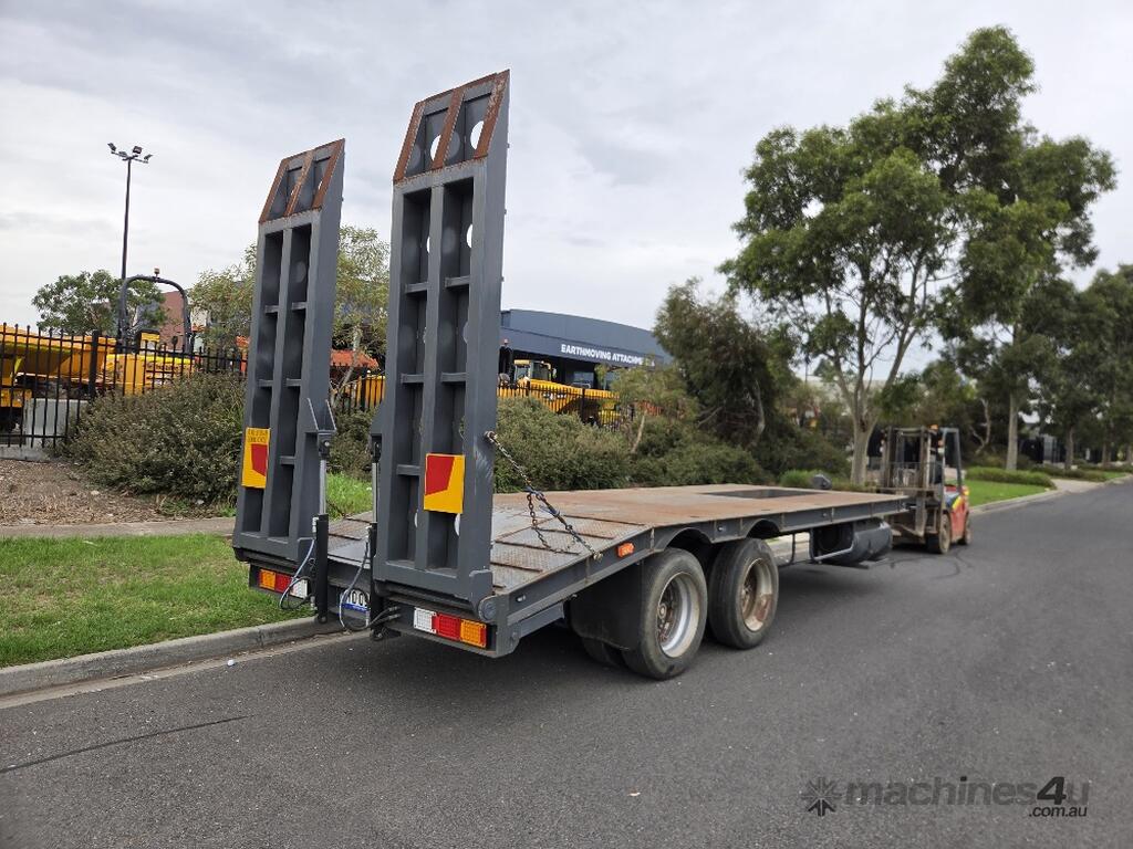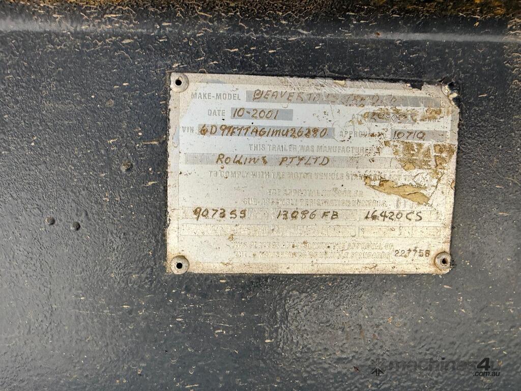 USED ROLLINGS 2001 STEEL PLANT TRAILER (TR052) WITH BARTLETT BALL HITCH, 20,000kg ATM, TANDEM AXLE, HYDRAULIC RAMPS, JOCKEY STAND. 6000mm DECK PLUS 1400mm BEAVER TAIL, 2500mm WIDE, 2700mm RAMP LENGTH, 9400mm OVERALL LENGHTH.