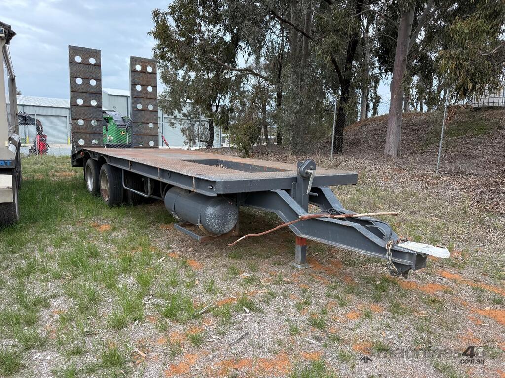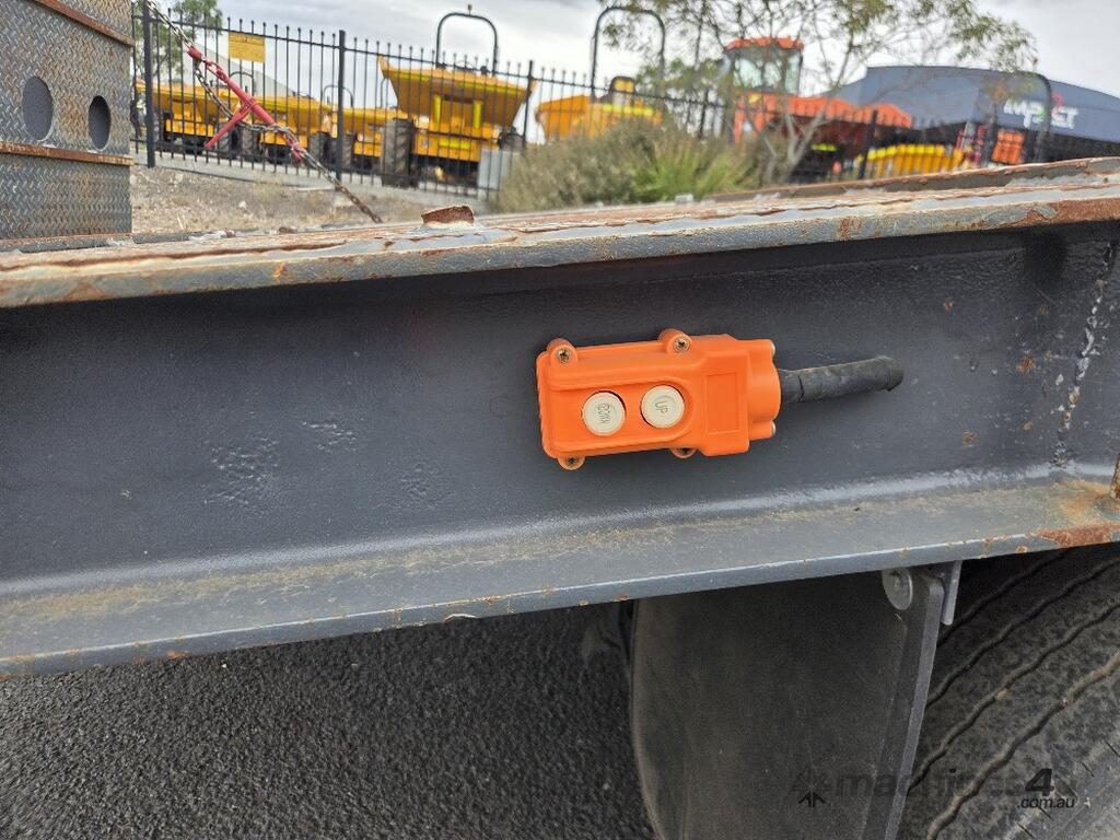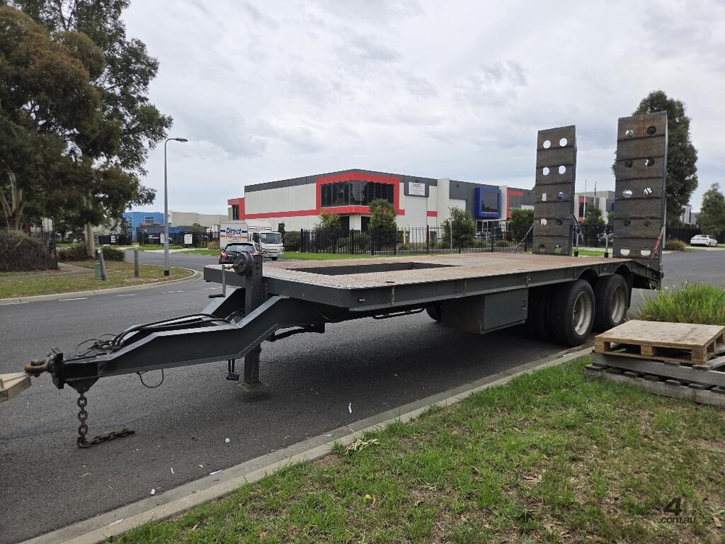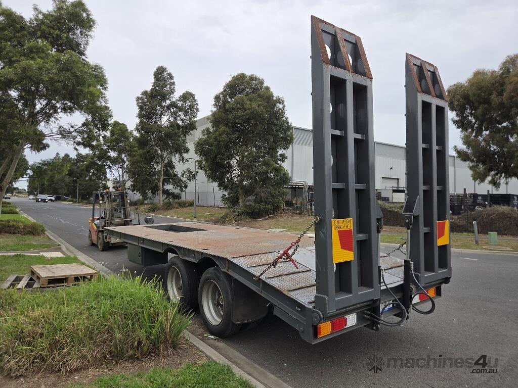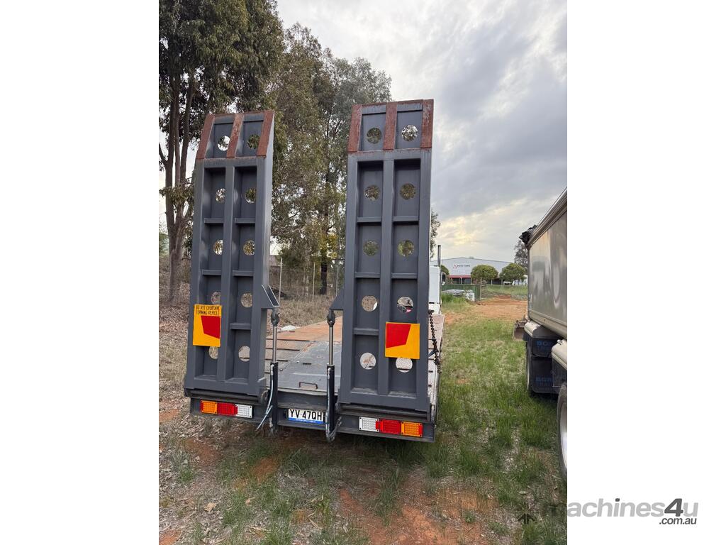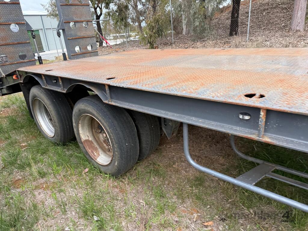 USED ROLLINGS 2001 STEEL PLANT TRAILER (TR052) WITH BARTLETT BALL HITCH, 20,000kg ATM, TANDEM AXLE, HYDRAULIC RAMPS, JOCKEY STAND. 6000mm DECK PLUS 1400mm BEAVER TAIL, 2500mm WIDE, 2700mm RAMP LENGTH, 9400mm OVERALL LENGHTH.